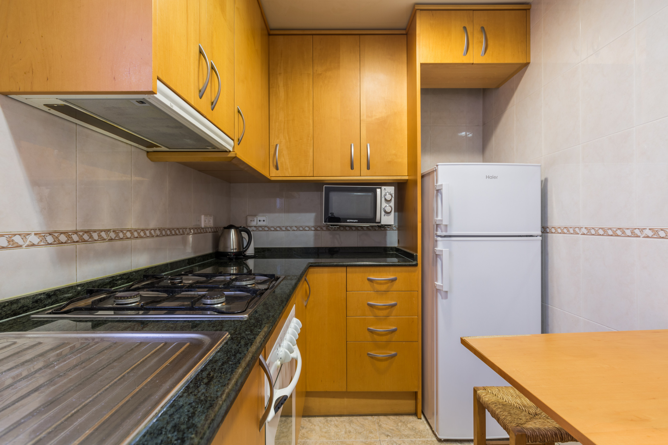 La capacidad del apartamento es hasta 5 personas. El apartamento tiene una cocina, un baño completo, 1 aseo y cuenta con aire acondicionado, calefacción e internet WIFI gratis de alta velocidad. Además, hay TV de pantalla plana. Cocina está equipada con nevera, frigorífico, cafetera, hervidor de agua, vitrocerámica, microondas, horno y lavadora. Las toallas, las sábanas y el secador de pelo están incluidos.