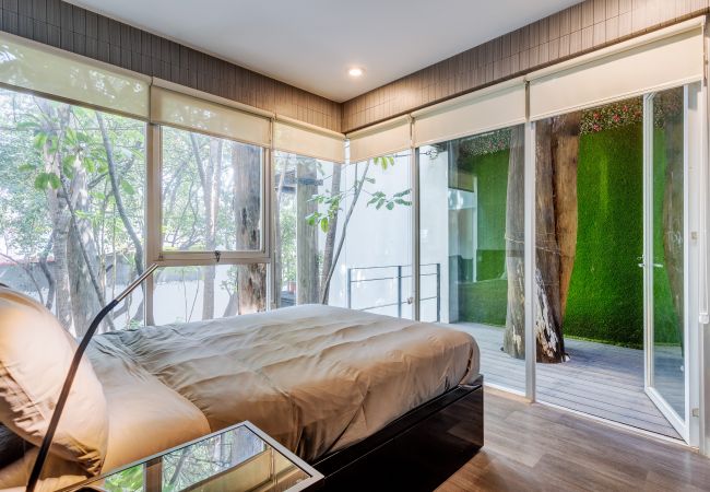 Este hogar lo componen diferentes espacios que representan calidez y contacto con la naturaleza, lo que te provocará una desconexión de todo el movimiento de una gran ciudad, aunque estés en el centro de un muy lindo barrio como lo es Roma Sur.