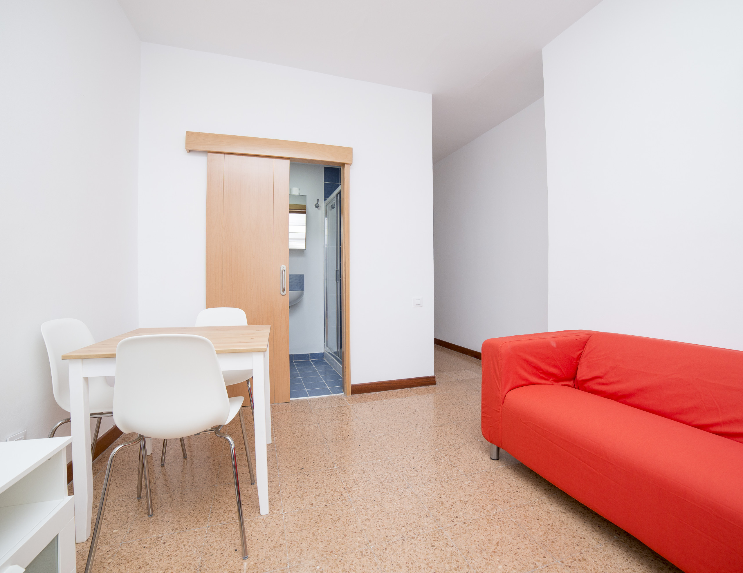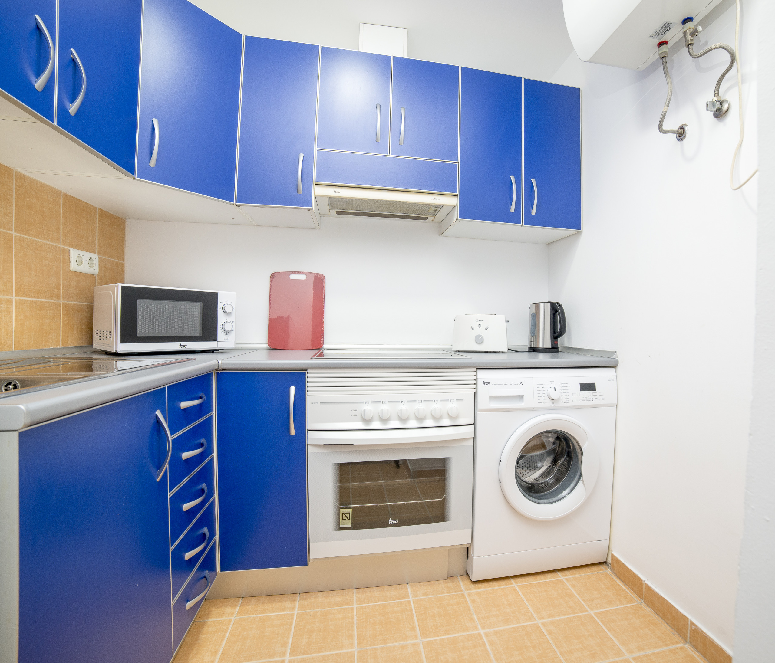 Cocina con horno, microondas y accesorios eléctricos. El edificio tiene una amplia azotea convertida a solarium, la zona es ideal, muy animada y muy cerca del Parque Santa Catalina. Parada de autobús muy cerca y zonas de aparcamiento privado a poco metros.