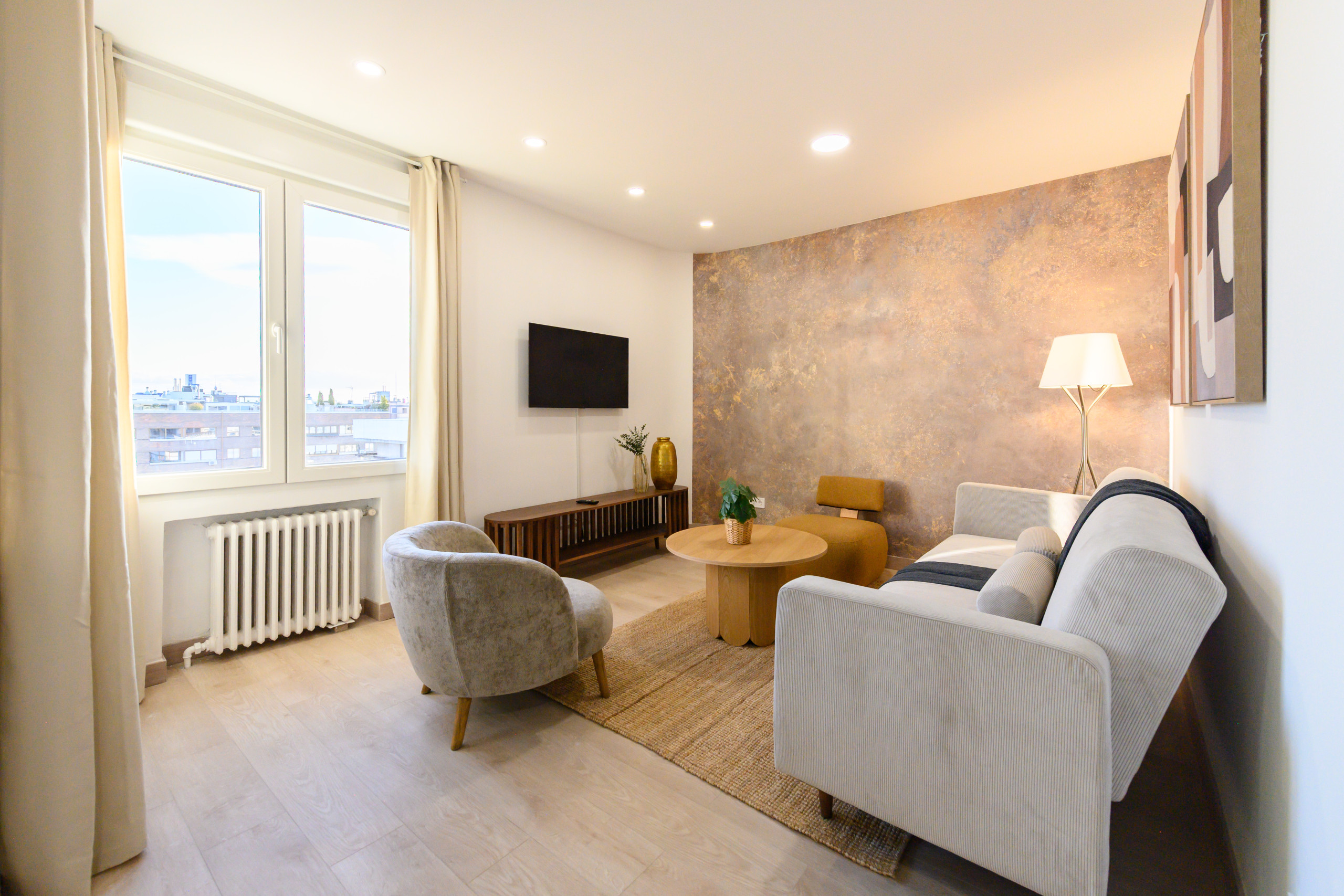 En resumen: Un piso espectacular y moderno, totalmente amueblado y equipado, muy luminoso, con dos dormitorios con terraza privada con hermosas vistas a la ciudad. Una opción perfecta para quienes buscan una estancia de lujo, cómoda, tranquila y excelentemente comunicada en Madrid.