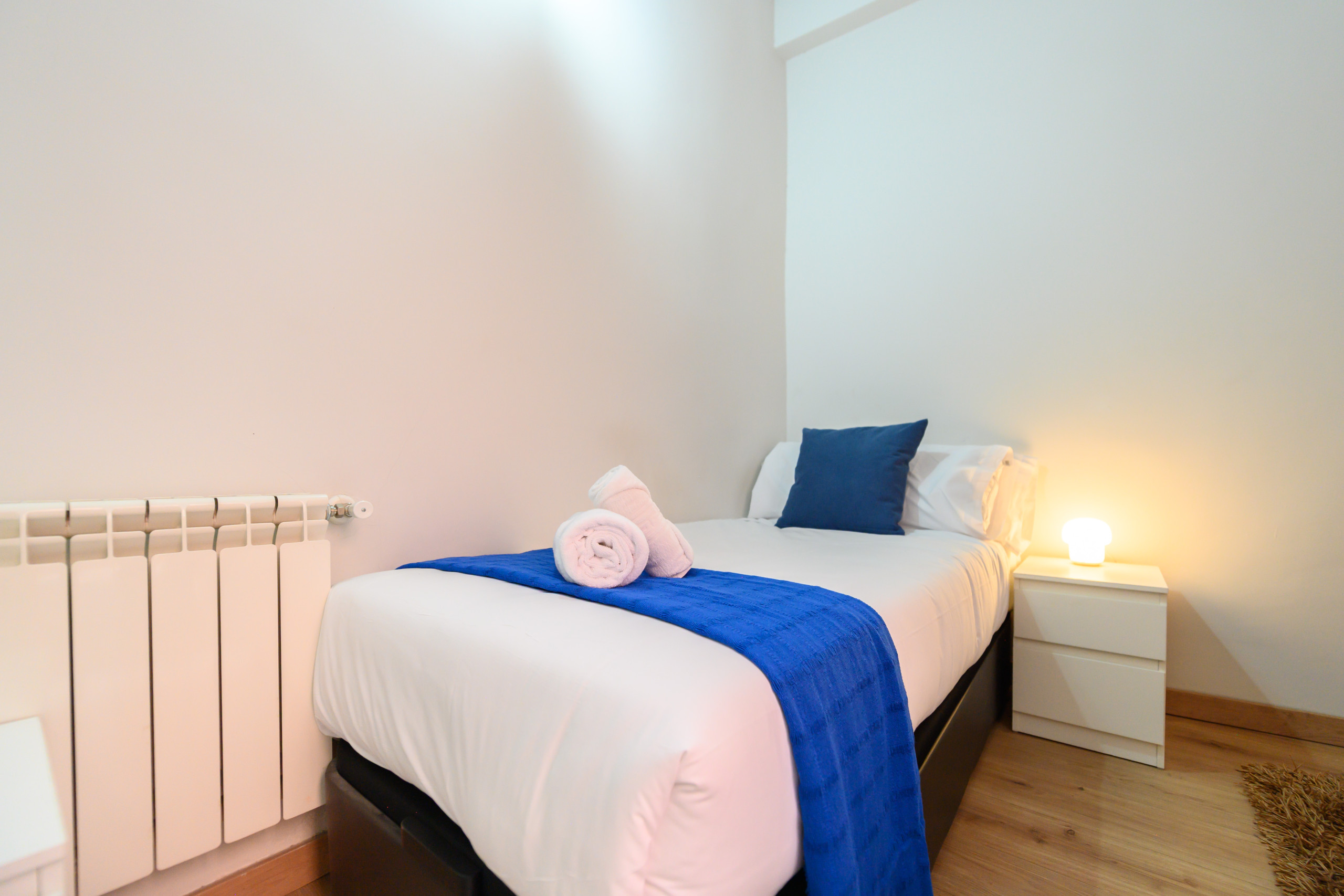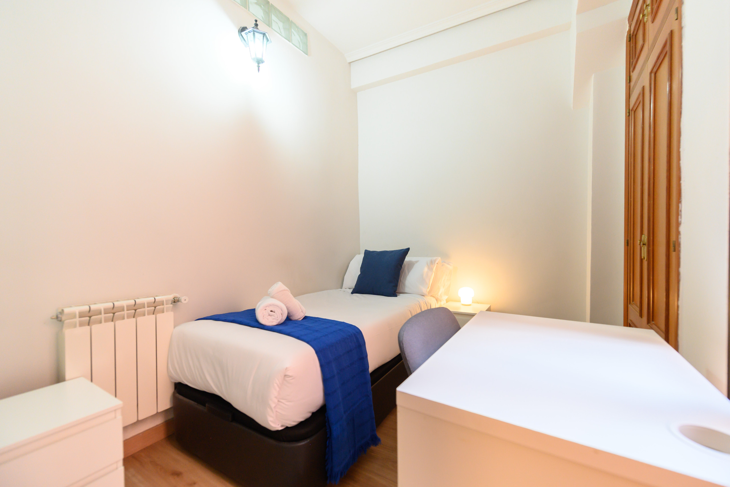 • Segundo dormitorio con cama individual, armario empotrado, escritorio y mesitas de noche.