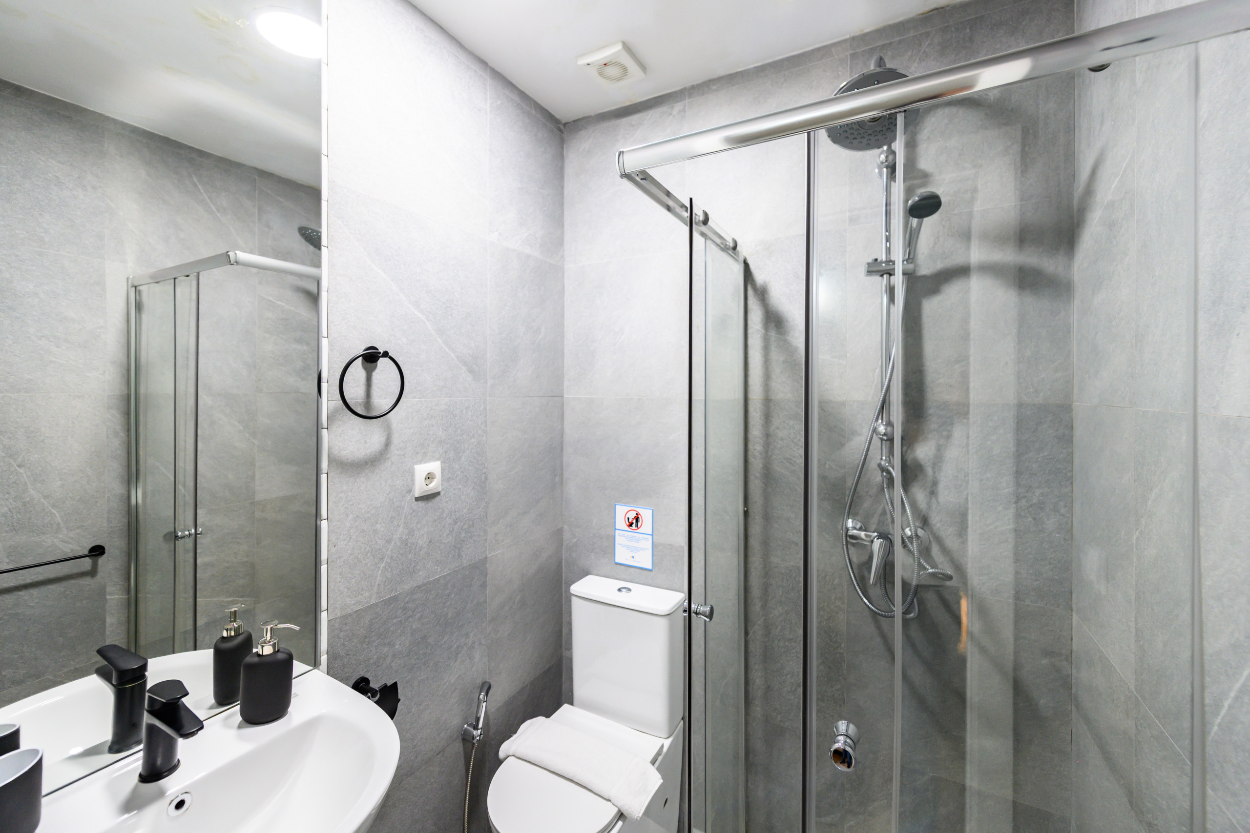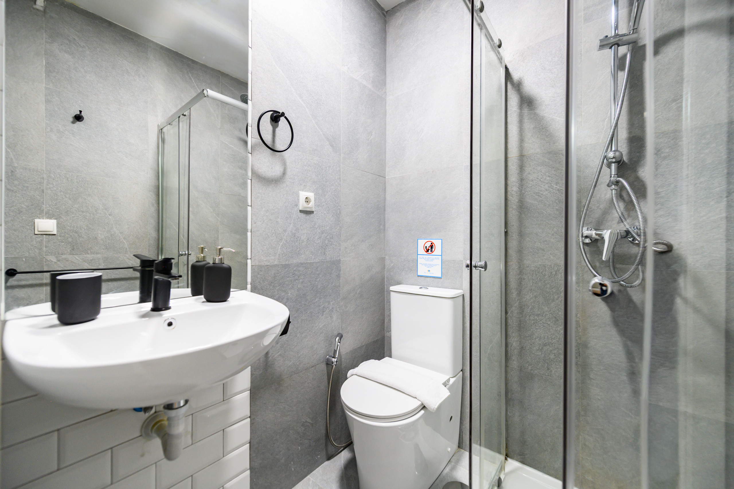 El baño completo, con un moderno plato de ducha, garantizando funcionalidad y estilo.