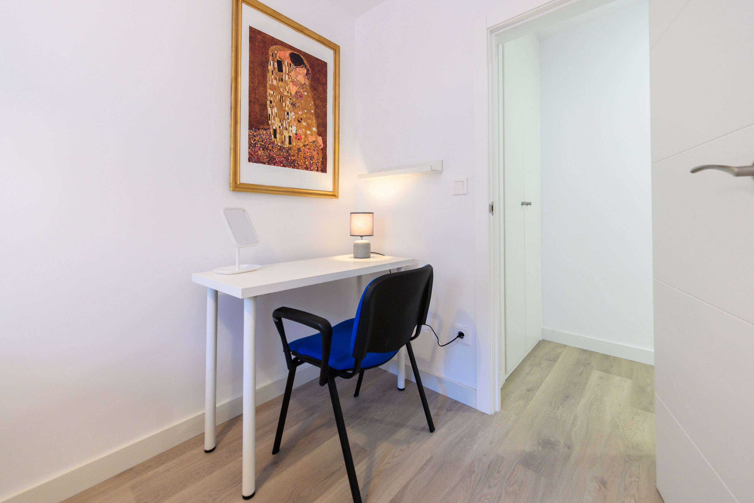 Al entrar en el piso, te sorprenderá la decoración y estilo. La cocina independiente crea un ambiente ideal para cocinar. El salón, amueblado con un cómodo sofá cama y un escritorio de trabajo, te ofrece un espacio perfecto para relajarte, trabajar o estudiar.