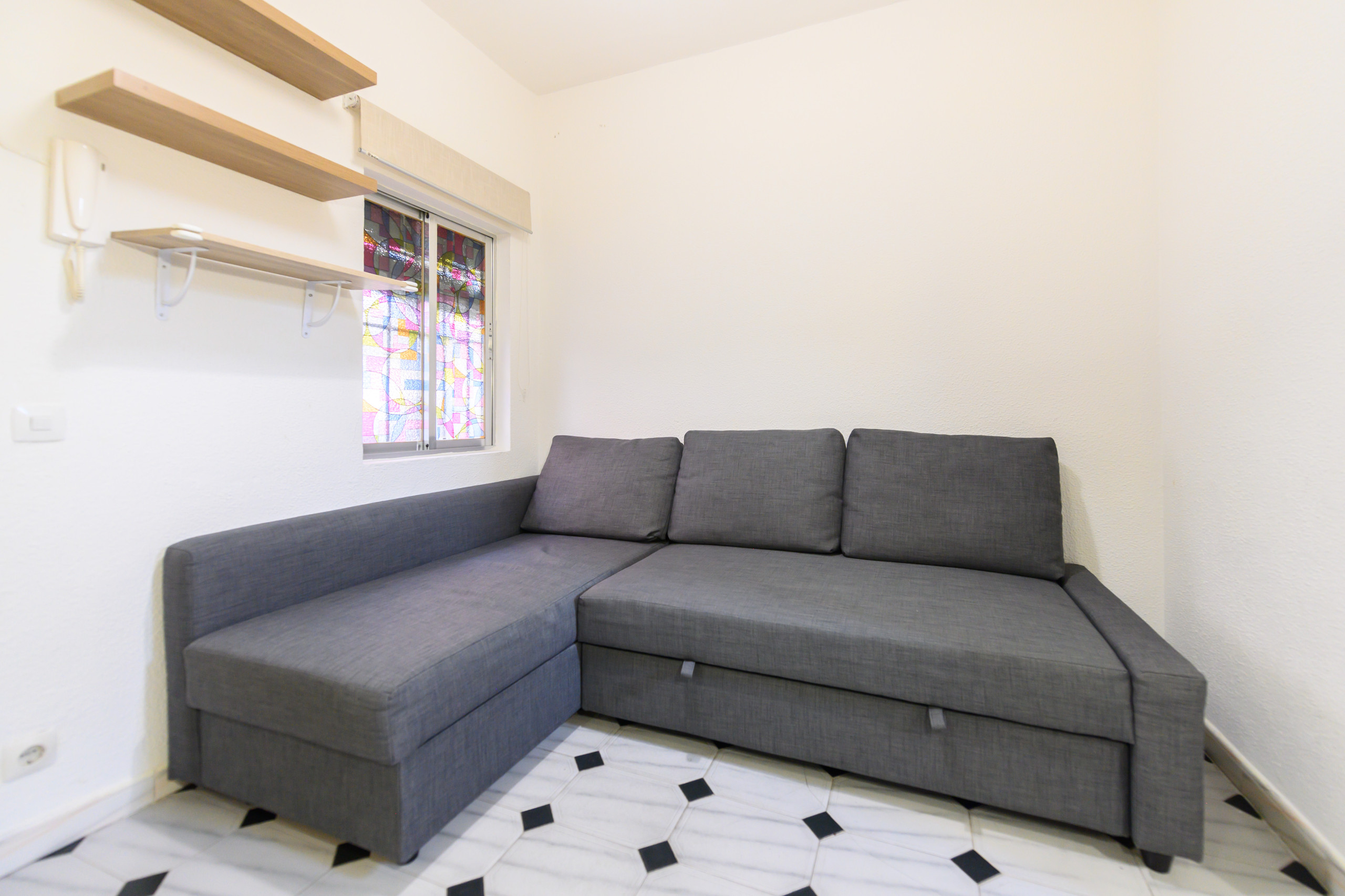 El salón es luminoso y acogedor, con sofá confortable y televisión, creando un ambiente ideal para relajarse tras la jornada.
