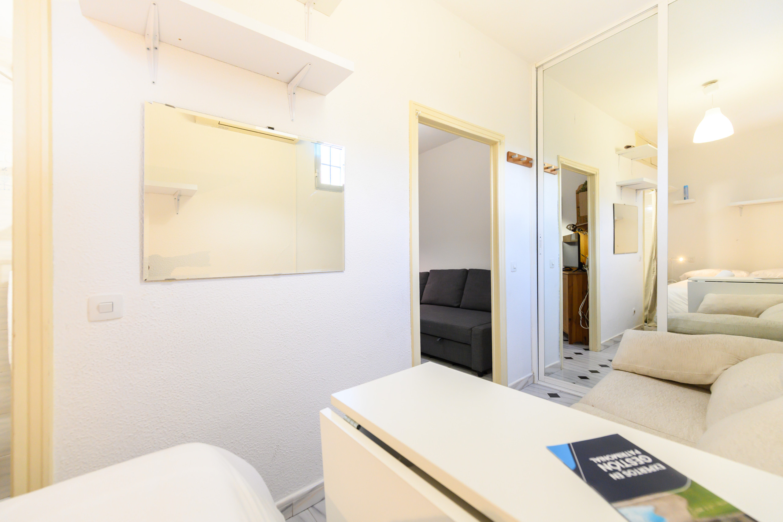 La vivienda dispone de un dormitorio independiente con cama doble, armario y escritorio, perfecto tanto para el descanso como para el teletrabajo. Cuenta con aire acondicionado y calefacción, garantizando una temperatura confortable durante todo el año.