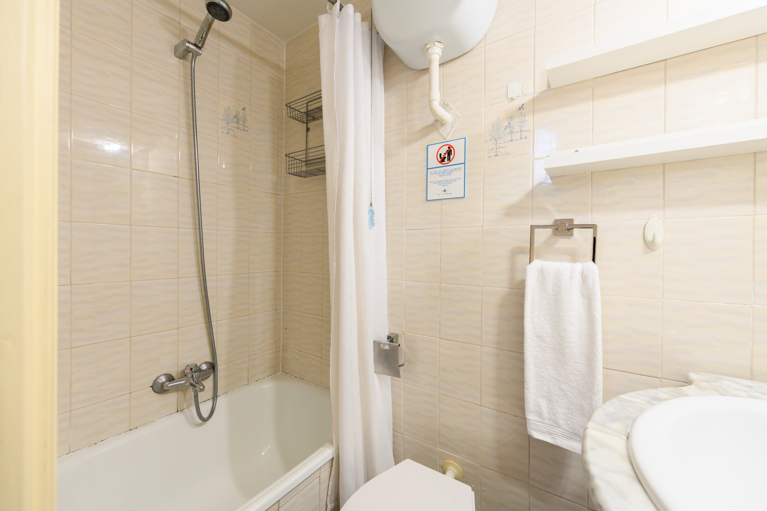 El baño es completo, equipado con bañera, mueble de lavabo con almacenaje y espejo, ofreciendo un espacio cómodo y bien distribuido.