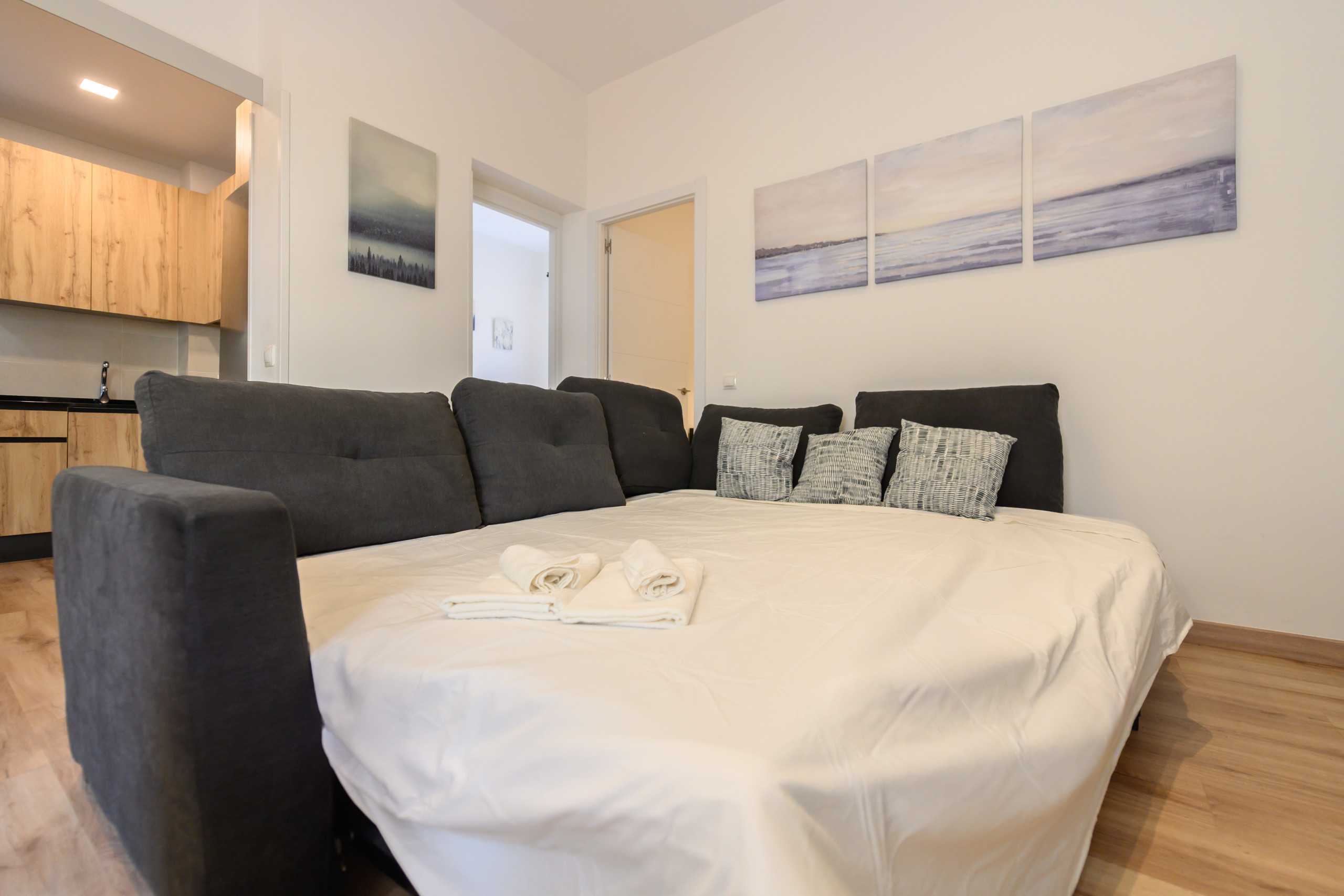 El salón es un espacio multifuncional que combina la comodidad con la versatilidad. Dos sofás cama permiten acomodar a visitantes adicionales o proporcionar asientos adicionales durante el día.