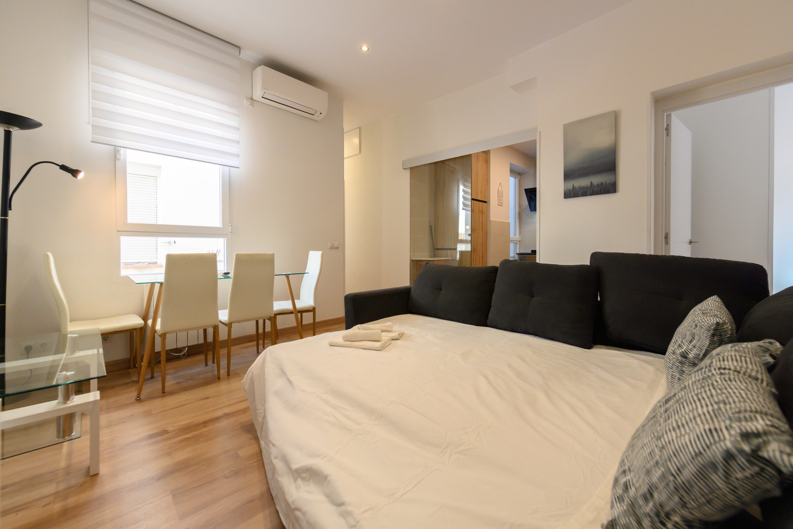 Al entrar en el piso, te sorprenderá la decoración y estilo. La cocina independiente crea un ambiente ideal para cocinar. El salón, amueblado con un cómodo sofá cama y un escritorio de trabajo, te ofrece un espacio perfecto para relajarte, trabajar o estudiar.