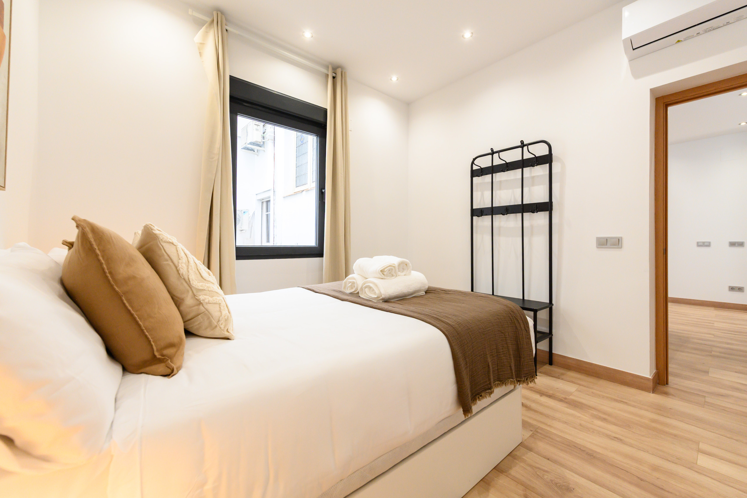 • Segundo dormitorio, también con cama doble con canapé, mesitas de noche, perchero, aire acondicionado y calefacción.