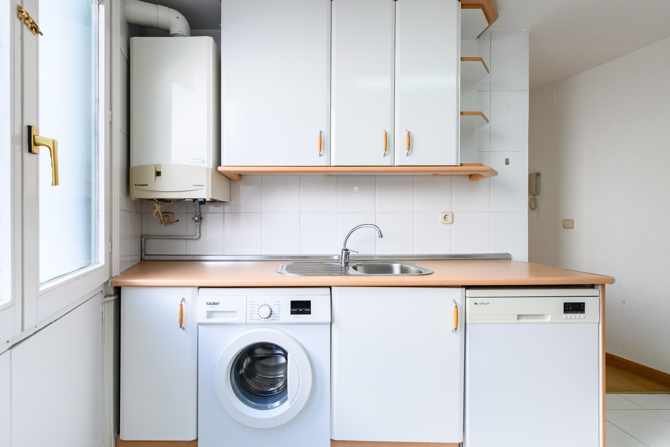 El corazón de este piso es su salón-comedor, con una sofá cama doble para invitados y una mesa en para desayunar o trabajar, la cocina abierta, creando un ambiente acogedor. Este espacio ha sido diseñado para ofrecer un área perfecta tanto para el descanso como para compartir momentos con familiares y amigos. La cocina está completamente equipada con electrodomésticos y los utensilios esenciales, brindando todo lo necesario para preparar desde una cena sencilla hasta un menú más elaborado.