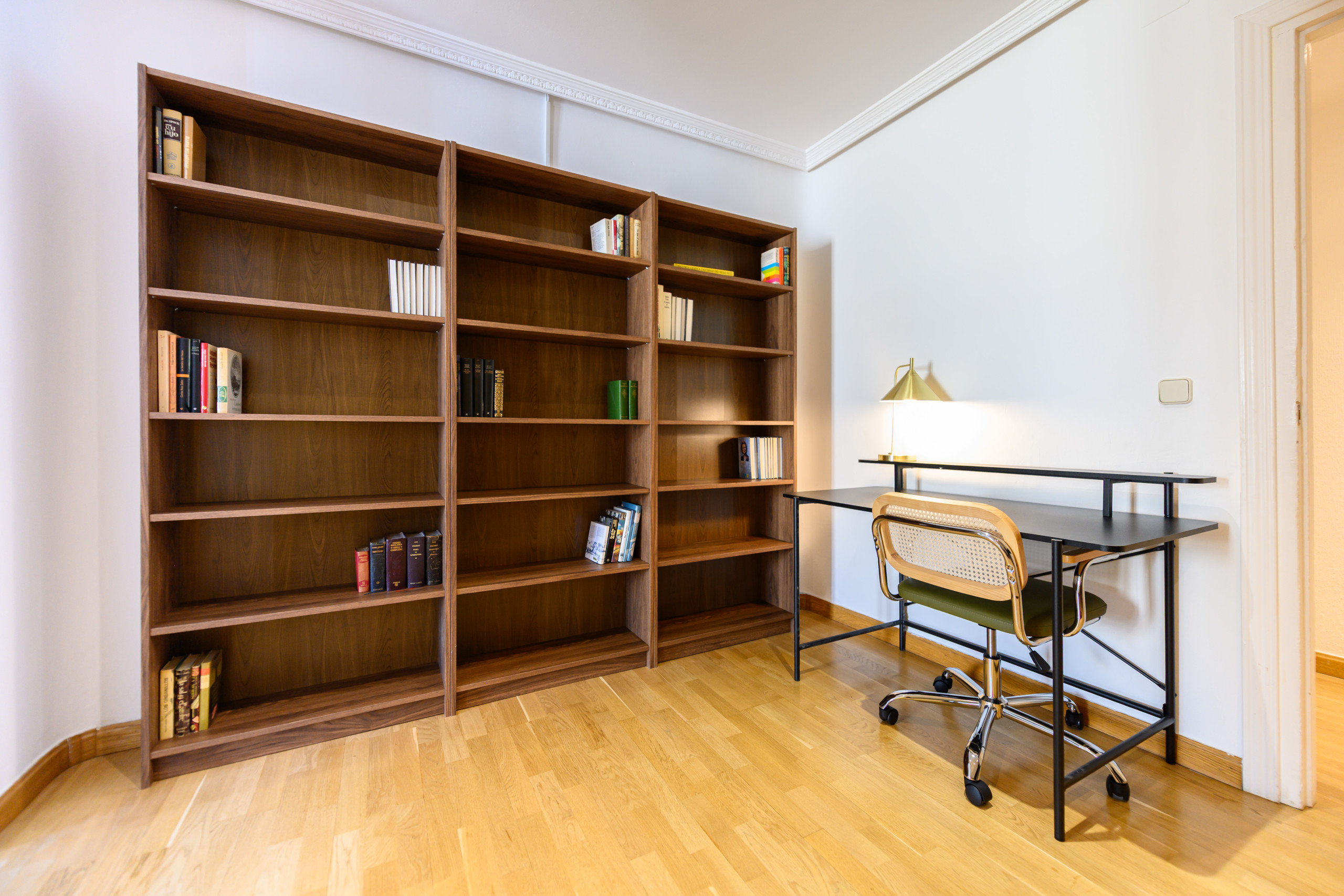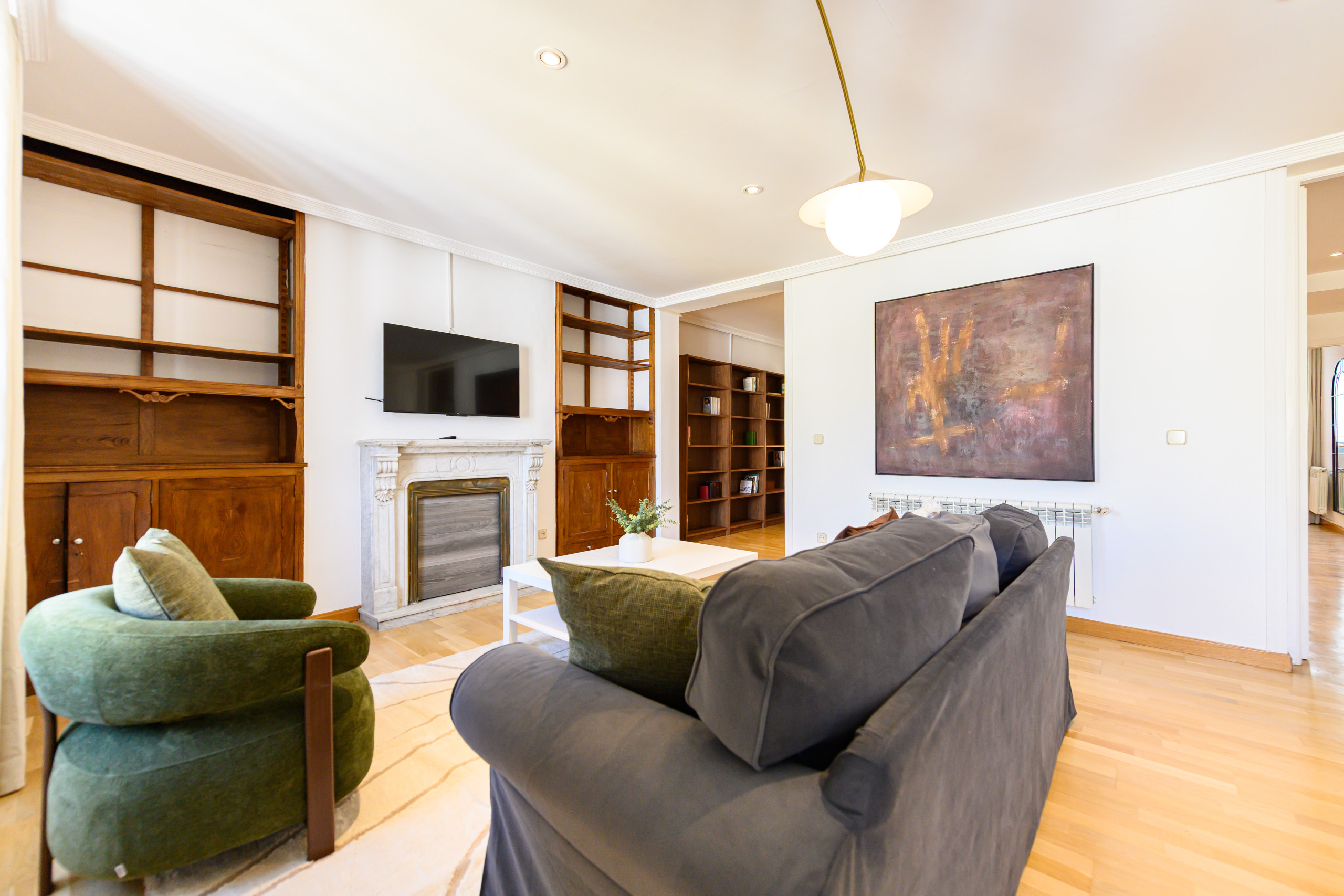 - Segundo salón, equipado con sillón, mesa, espacio de almacenamiento y escritorio, ideal como zona de trabajo o lectura.