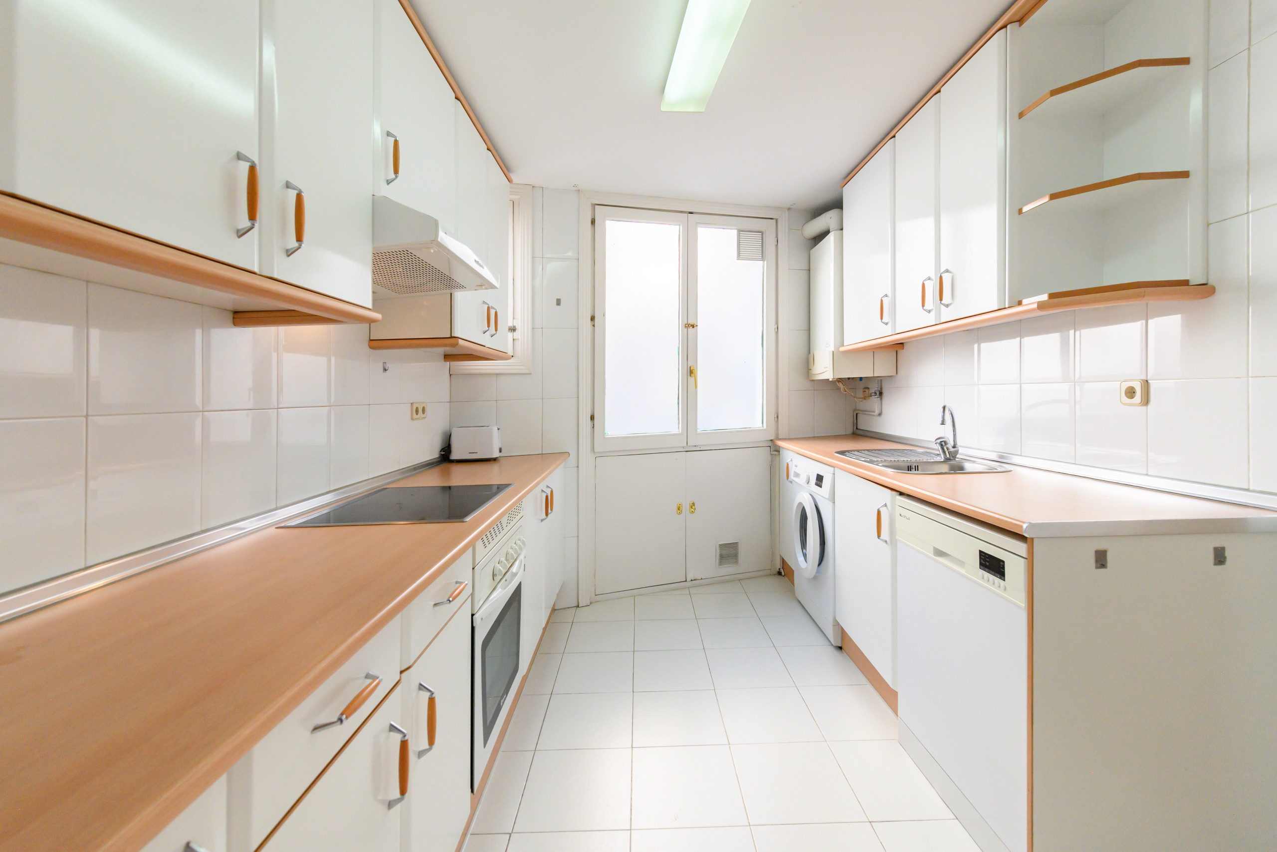 - Amplia cocina totalmente equipada con frigorífico, microondas, horno, tostadora, lavadora, lavavajillas y espacio para almacenaje.