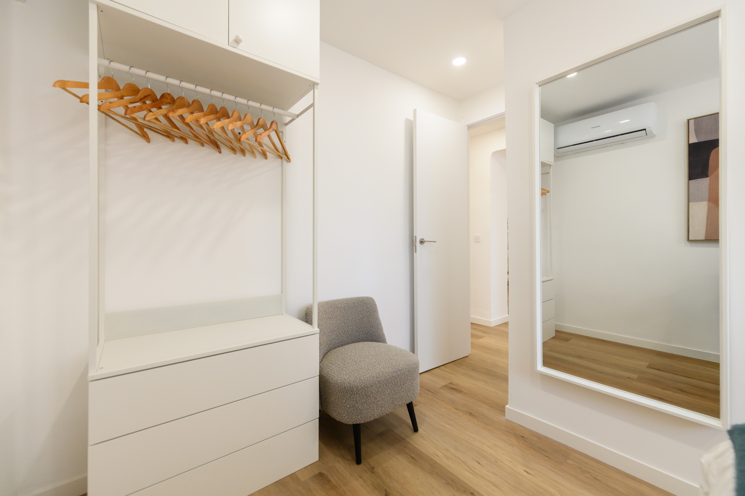 • Tercer dormitorio: Este segundo dormitorio doble está equipado con una cama matrimonial y un amplio armario, ideal para guardar toda la ropa y accesorios de forma ordenada. Su disposición permite crear un ambiente relajante y bien organizado.