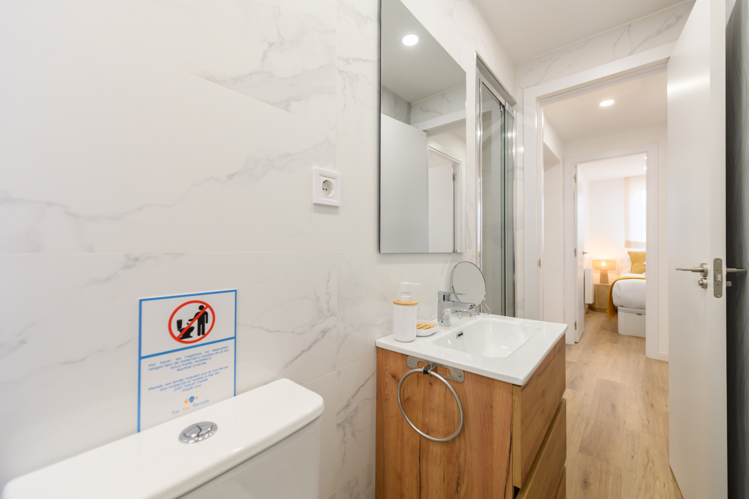 • Primer dormitorio: Se trata de una habitación espaciosa, equipada con una cama matrimonial que garantiza un descanso reparador. Además, cuenta con un escritorio, ideal para trabajar o estudiar desde casa. Como valor añadido, este dormitorio dispone de un baño, completamente equipado con un plato de ducha, ofreciendo privacidad y comodidad para sus ocupantes.