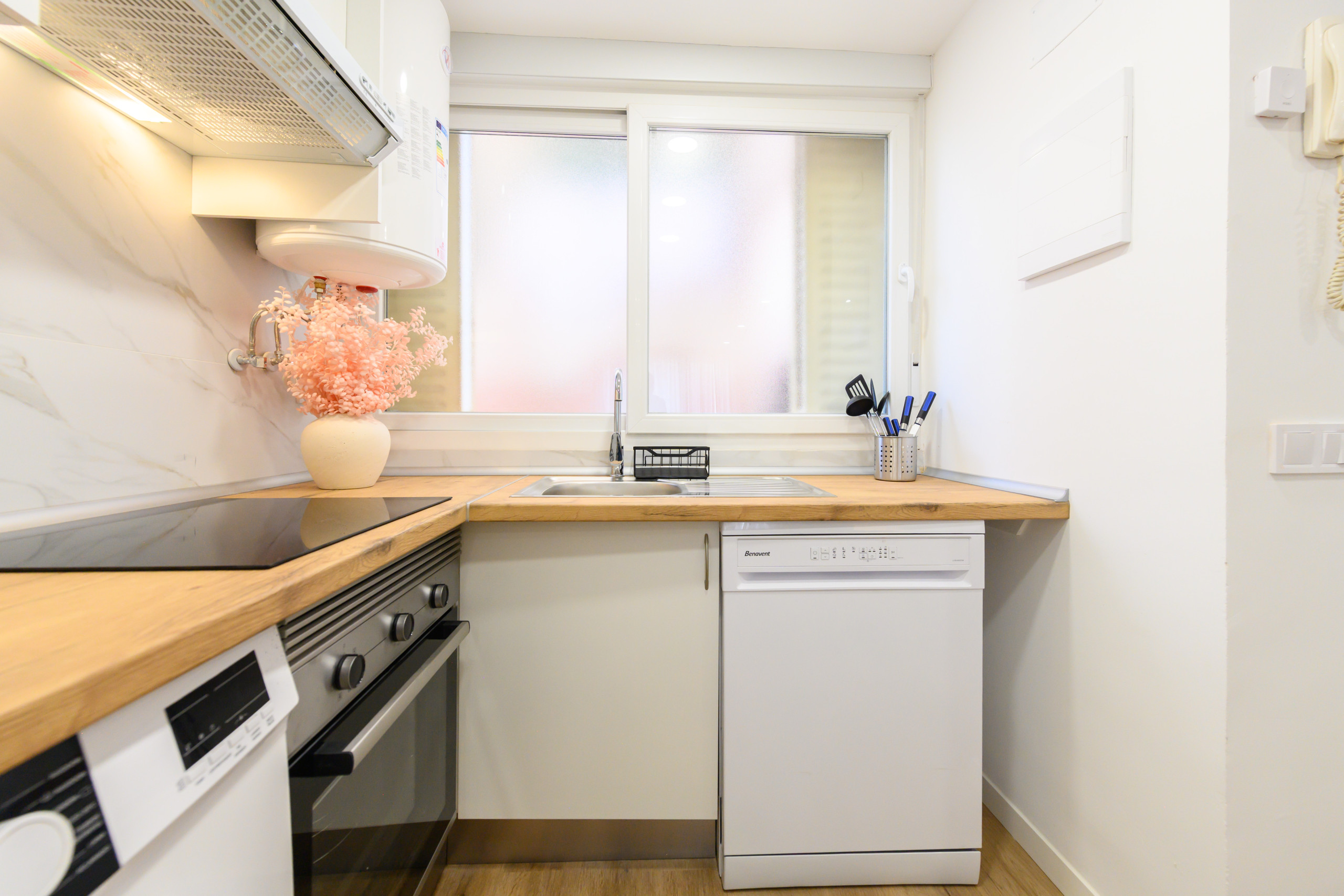 La cocina independiente, equipada con todos los electrodomésticos necesarios, como nevera, horno, microondas, vitrocerámica y lavavajillas, permite preparar deliciosas comidas con total comodidad. Además, cuenta con una práctica zona de desayunador, ideal para disfrutar de un café por la mañana o una comida rápida sin necesidad de usar el comedor principal.