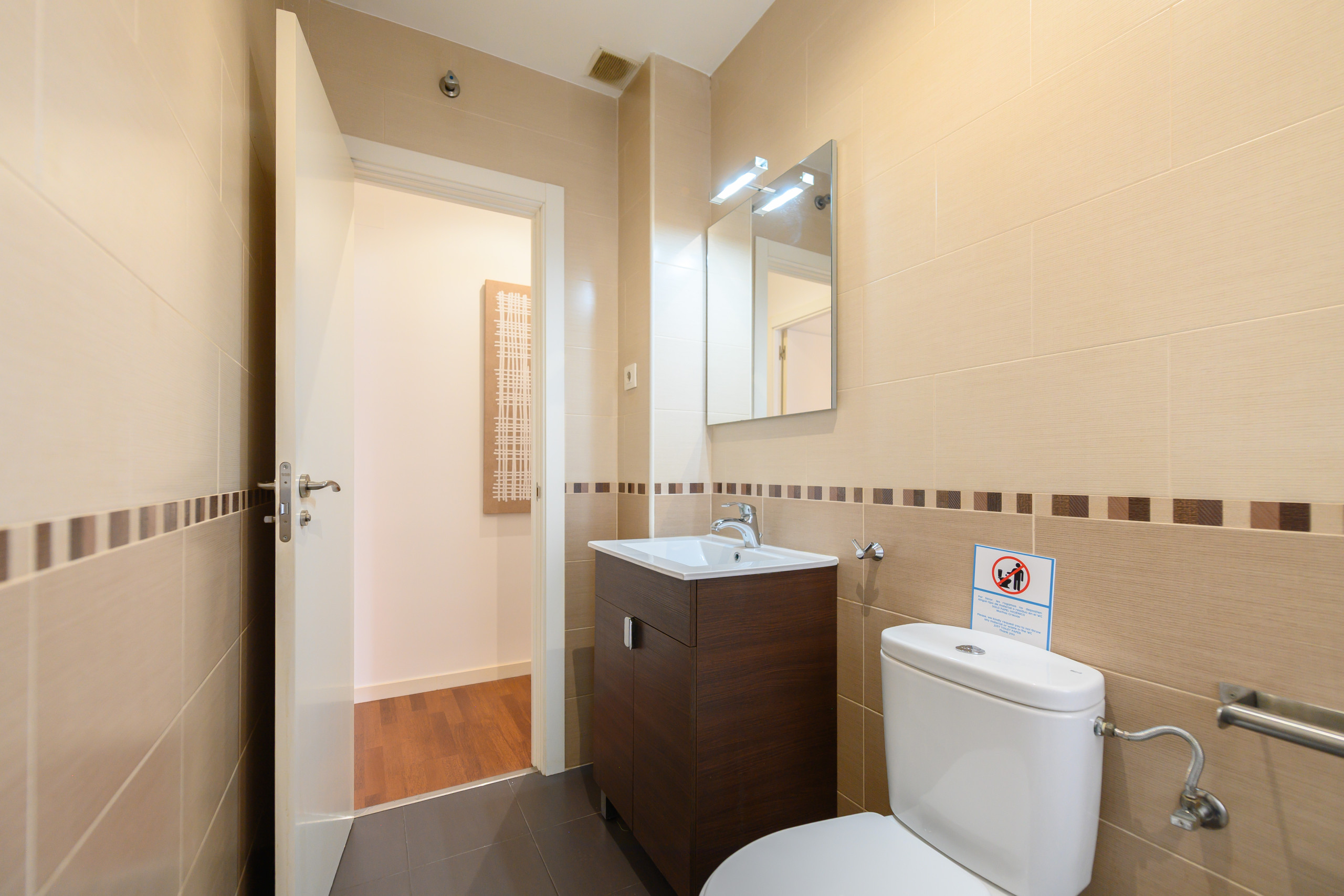El apartamento cuenta con aire acondicionado y wifi de alta velocidad, por lo que estarás siempre conectado y cómodo durante tu estancia. La cocina tipo americana está completamente equipada con todos los electrodomésticos necesarios, como horno, microondas, lavavajillas y lavadora.