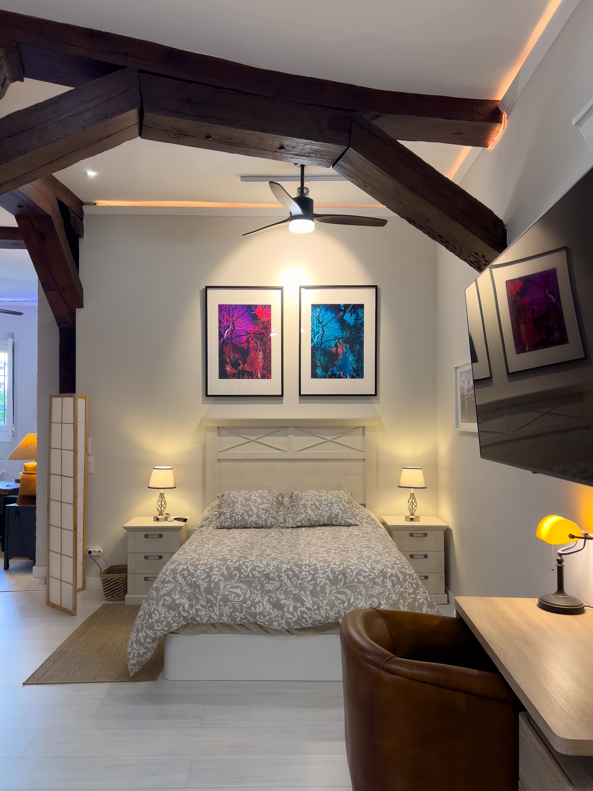 El dormitorio principal cuenta una confortable cama doble y bonita decoración creando un ambiente relajante y acogedor. El baño, equipado con plato de ducha y, añade un toque de confort a tu estancia.