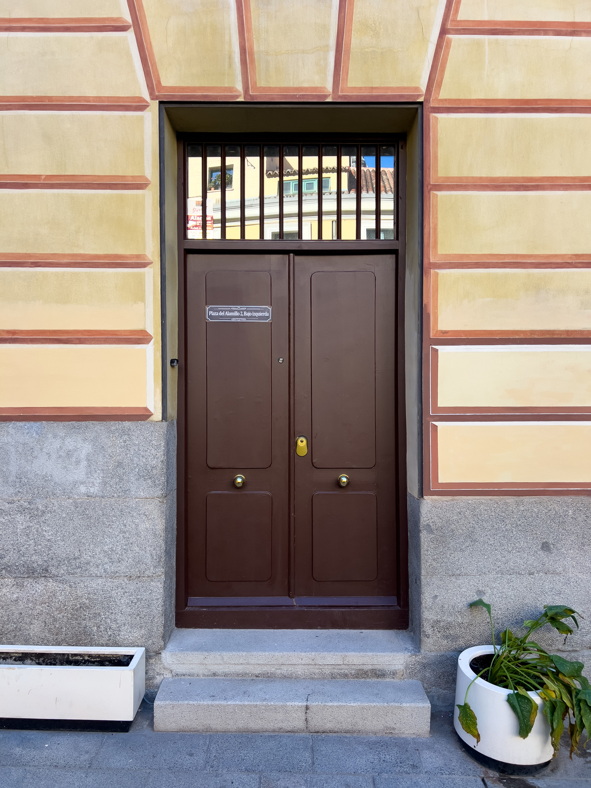 Ubicado en la plaza del Alamillo número 2 bajo izquierda y, a pesar de ser un bajo, se siente como una primera planta al estar en el lado elevado de la plaza y accediendo a él a través de unas escalinatas ajardinadas (como se puede ver en las fotos). A su vez, por tener entrada independiente, tiene un fácil acceso para personas con dificultad, pudiendo cargar y descargar en la misma puerta por un acceso privado. Considerada como una de las 3 plazas con más encanto de Madrid, donde con frecuencia se ruedan películas, anuncios, documentales etc.