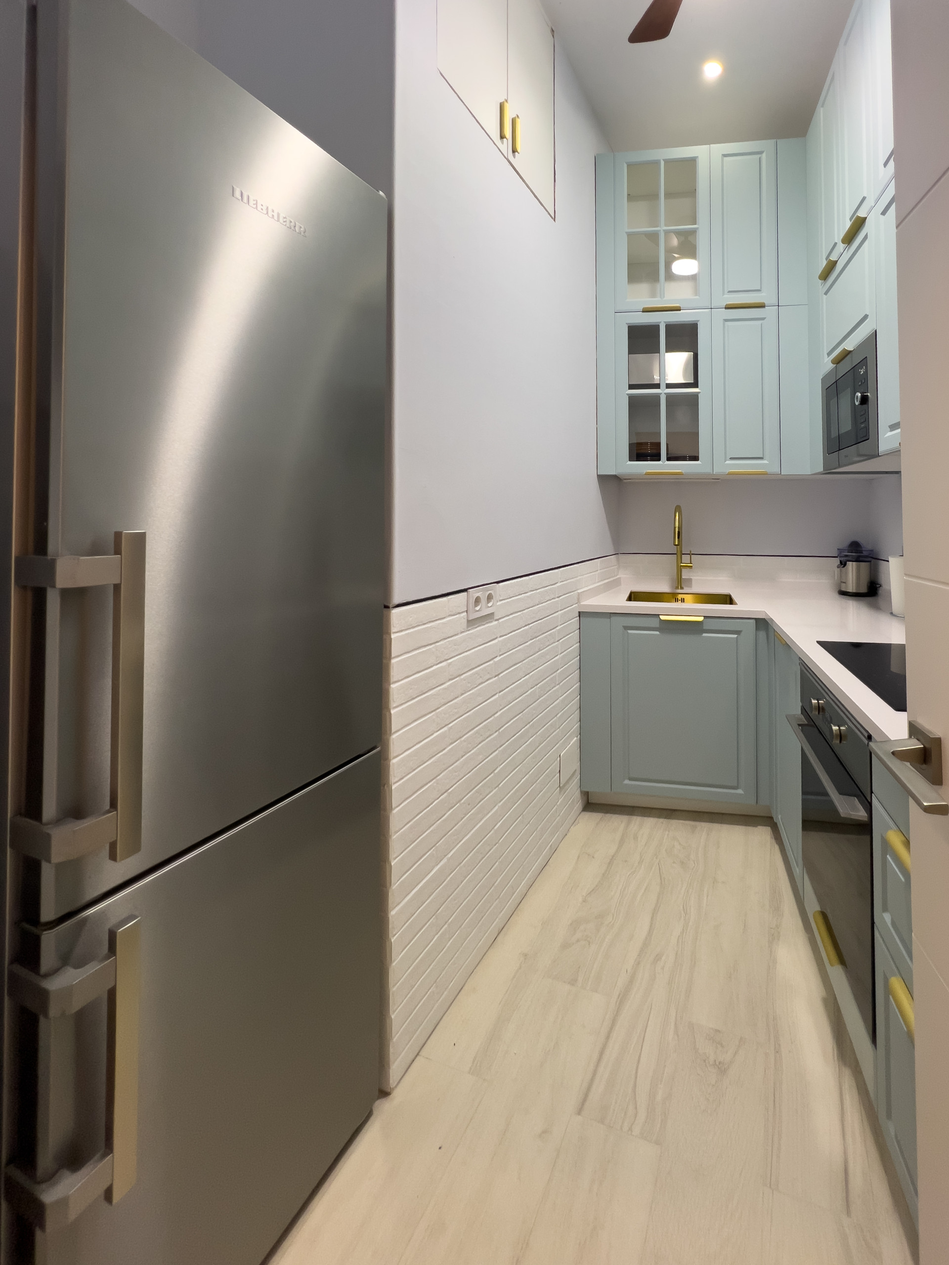 - 1/nevera lieber de gran tamaño en aluminio, horno, vitrocerámica de 3 fuegos, lavadora-secadora, lavavajillas, microondas, plancha para sándwich, carnes, etc, máquina de café para capsulas pequeñas y grandes, hervidor de agua, exprimidor de zumo, menaje completo para 6 personas, cubertería para 6 personas, tuppers variados, abridores, tijeras, etc, sartenes, cacerolas, escurridores, coladores, plancha, tabla grande de planchar.