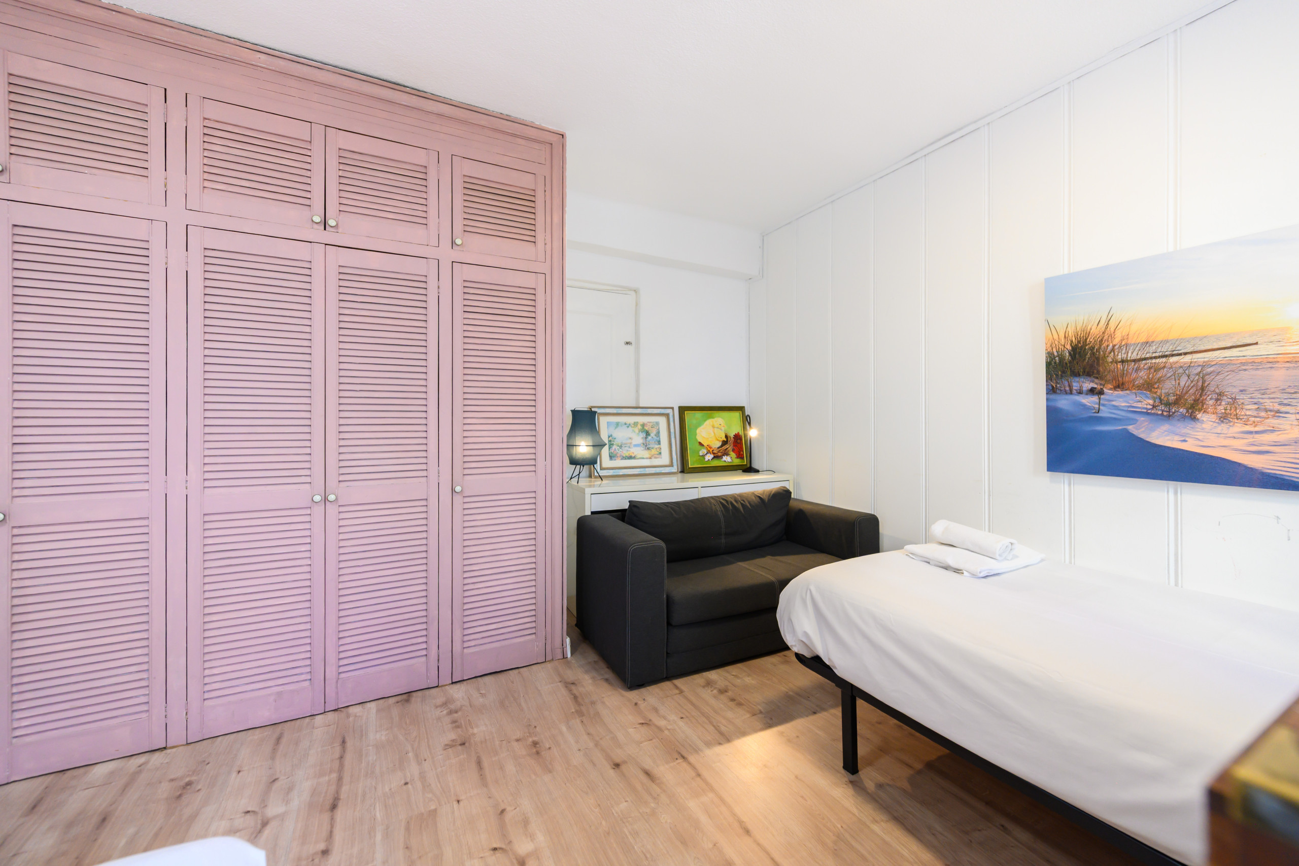Abre los ojos cada mañana en habitaciones inundadas de luz natural. Con opciones flexibles de camas - desde una individual hasta una doble - el apartamento se adapta perfectamente a tus necesidades, acogiendo cómodamente hasta seis huéspedes.