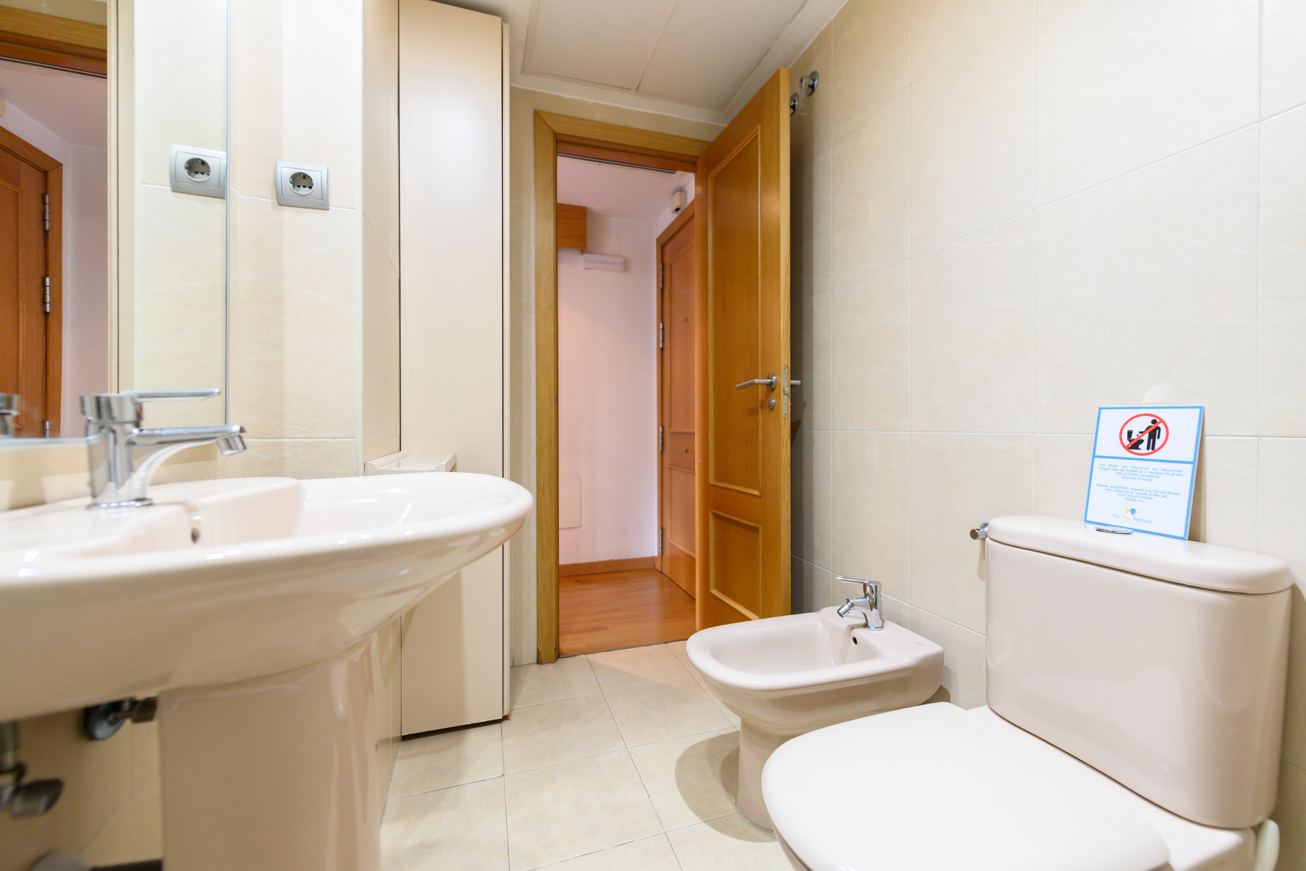 • Baño es completo, con WC, bidé, ducha, bañera y espejo.