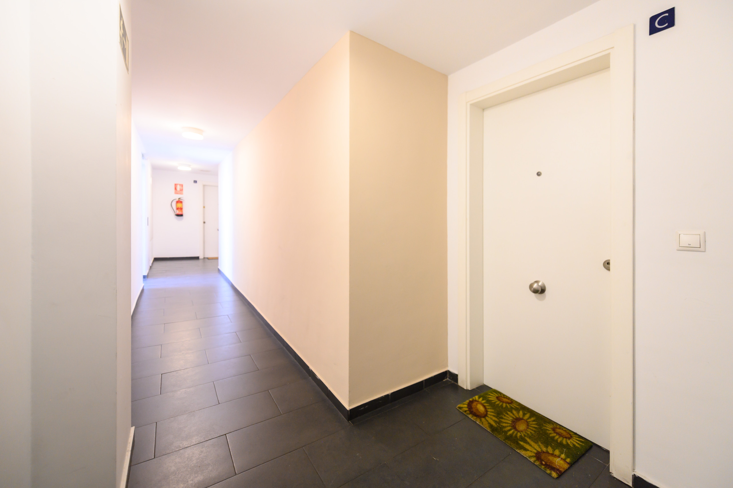 La vivienda cuenta con: Zona común con cama doble abatible, aire acondicionado, TV, sofá, espejo y armario. Baño completo con WC, ducha, espejo y espacio de almacenaje. Cocina equipada con mesa de comedor, microondas, lavavajillas, frigorífico y utensilios de cocina. En la parte inferior cuenta con un dormitorio con cama doble, espacio de almacenaje, lavadora y baño propio. Además, el piso tiene acceso a una terraza compartida.