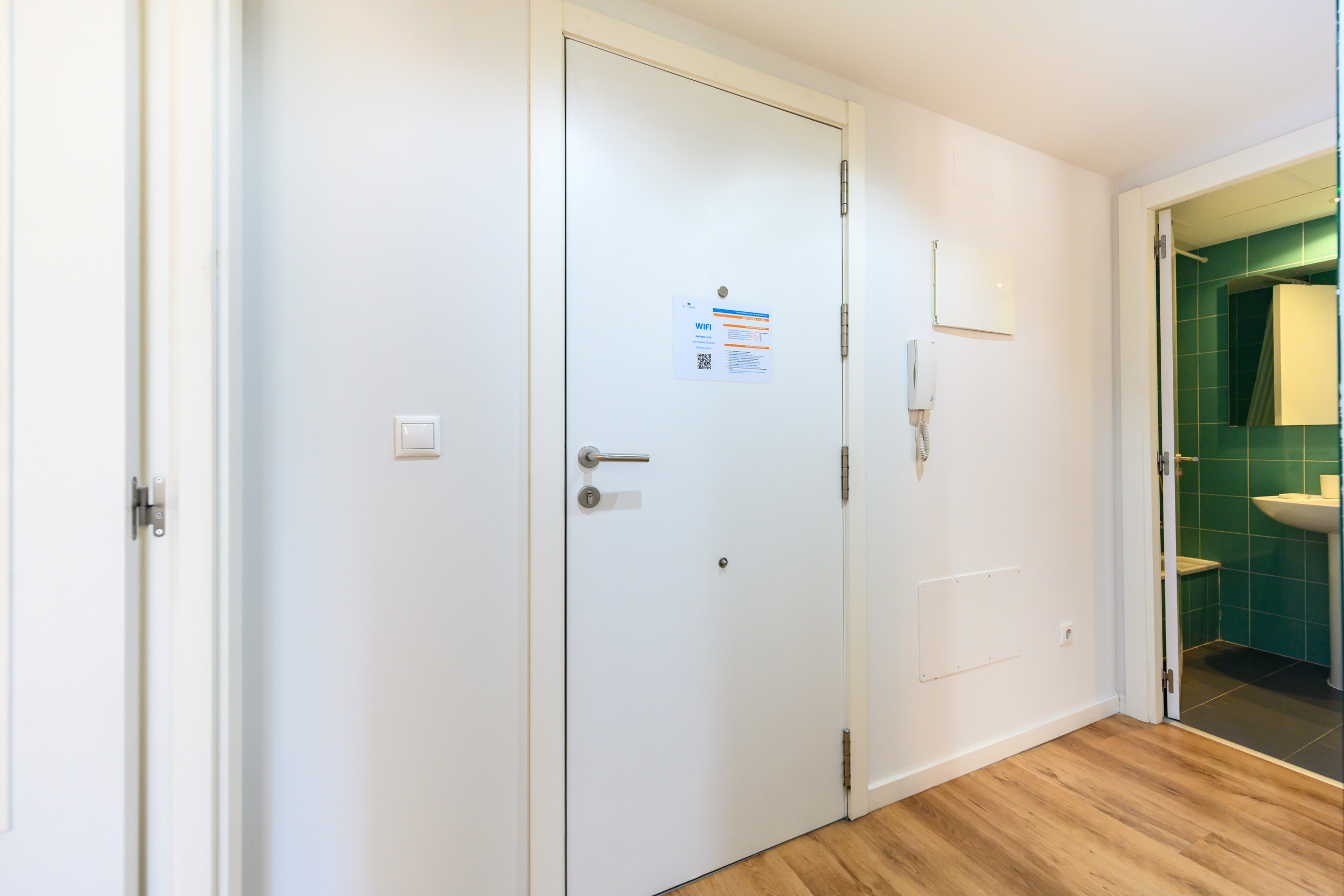 La vivienda dispone de un dormitorio independiente con cama doble, armario y escritorio, perfecto tanto para el descanso como para el teletrabajo. Cuenta con aire acondicionado y calefacción, garantizando una temperatura confortable durante todo el año.