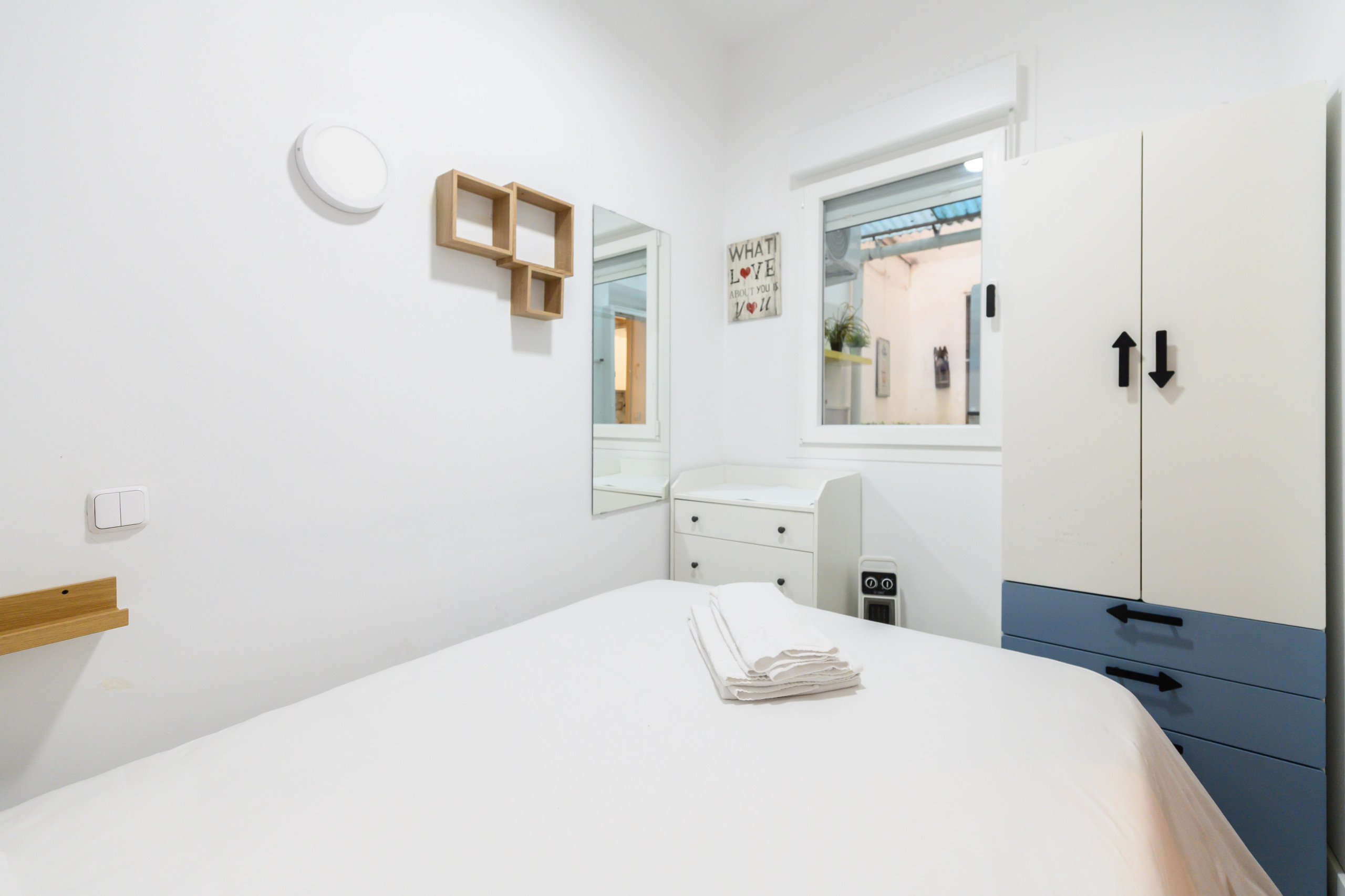 • 1 habitación: cama doble, armario, espejo y cómoda.