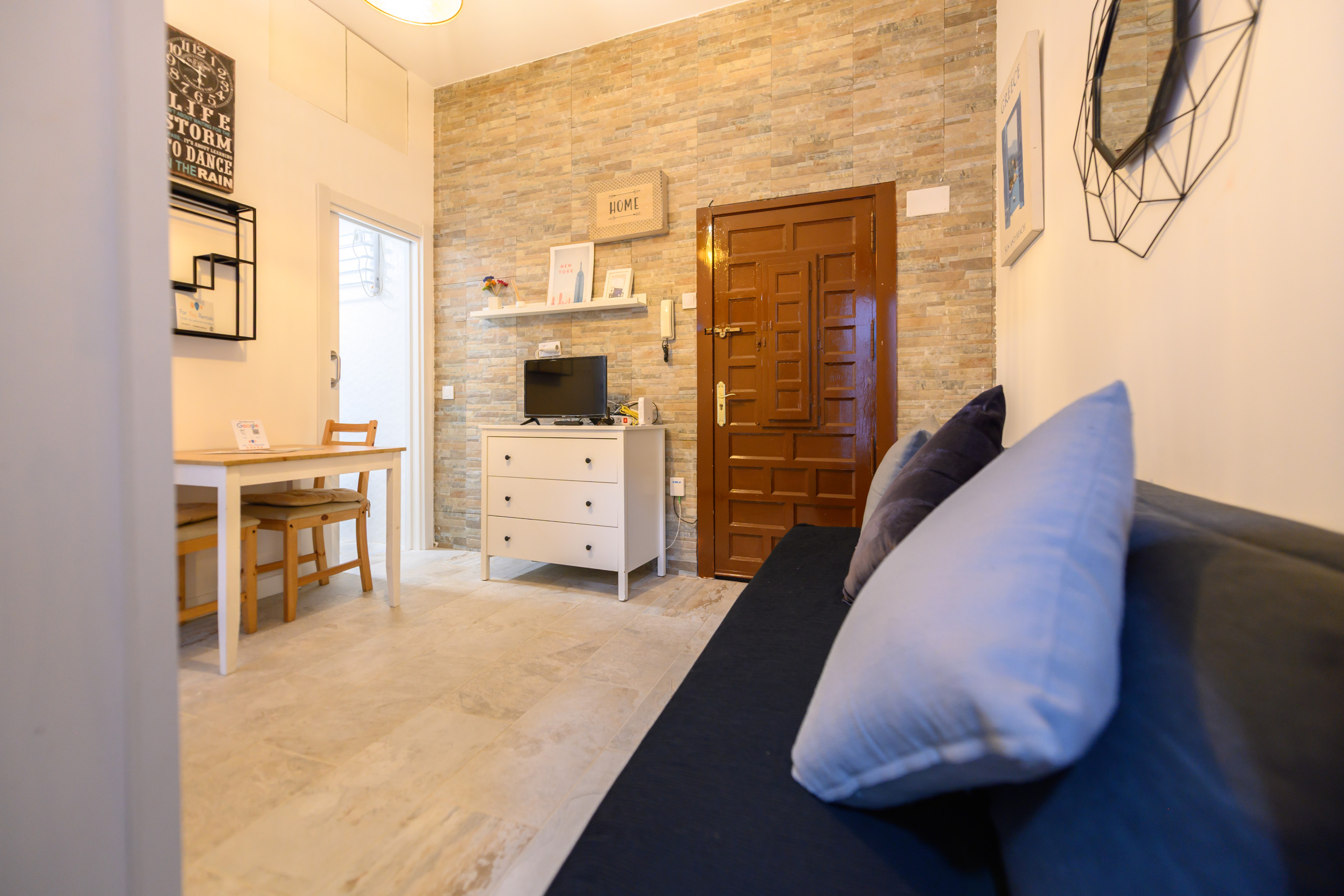 - El salón es un espacio versátil y luminoso, equipado con un sofá cama de alta calidad, ideal para relajarse luego de un día ajetreado.