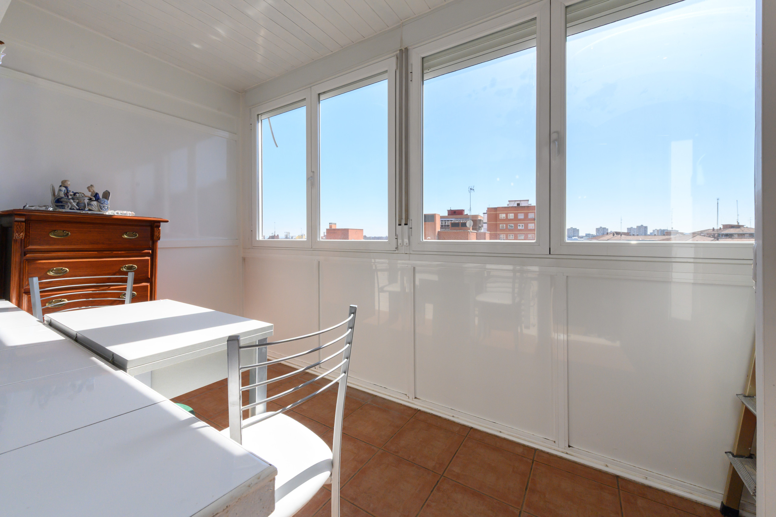 • Terraza privada con mesa y sillas, ideal para disfrutar de agradables vistas a la ciudad.
