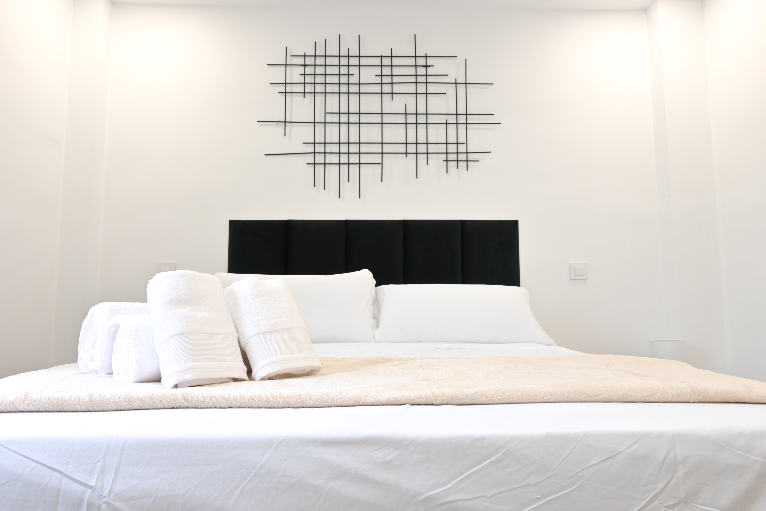 El apartamento consta de tres habitaciones con cómodas camas dobles. En la habitación principal, tendrás un baño privado mientras que las dos habitaciones restantes comparten uno de los baños de la casa. Ambos baños incluyen plato de ducha. La cocina está completamente equipada con electrodomésticos modernos y está diseñada para que puedas preparar tus propias comidas sin esfuerzo. El salón cuenta con un sofá cama doble, y una moderna televisión de pantalla plana. También tienen aire acondicionado y acceso al jardín del edificio para disfrutar del aire fresco y las vistas relajantes.