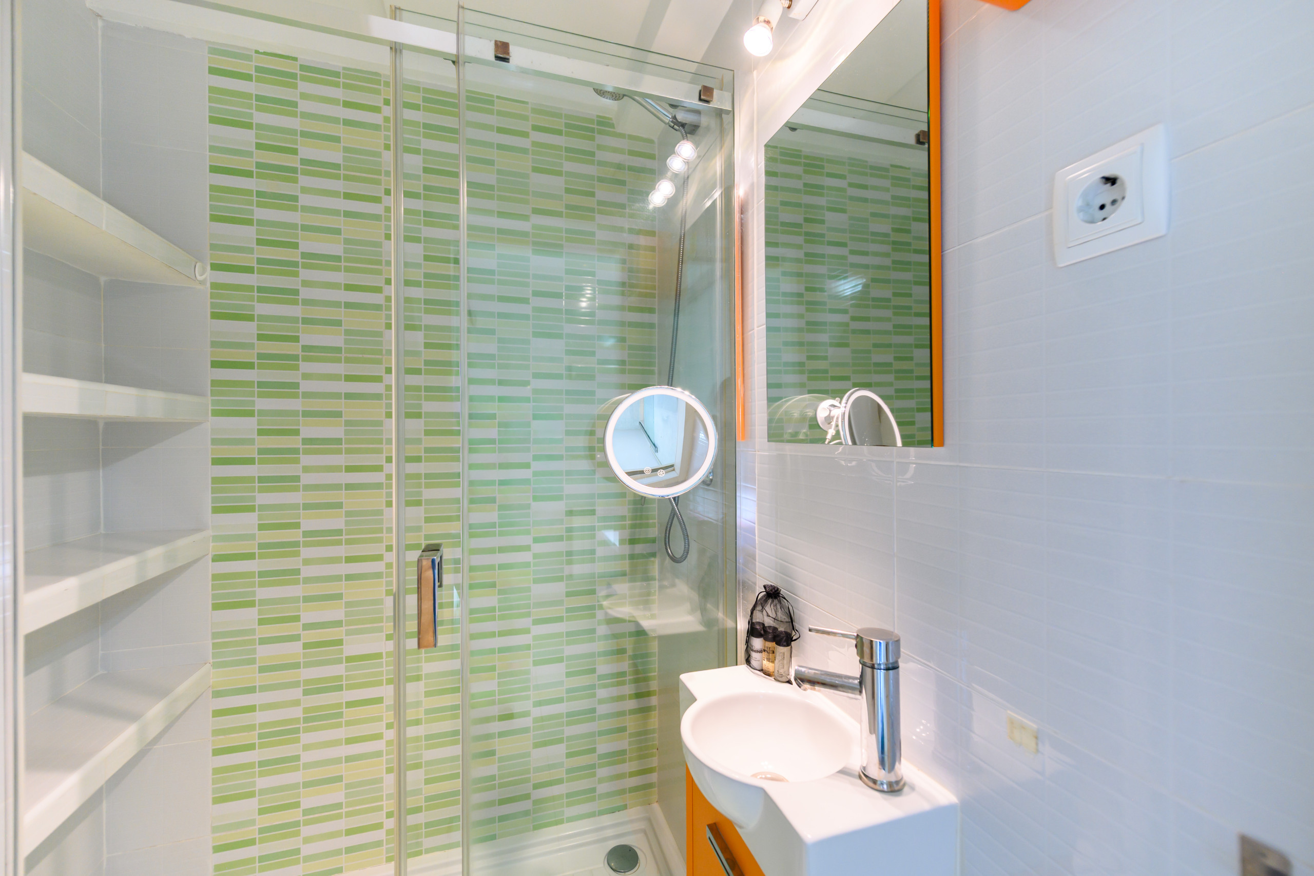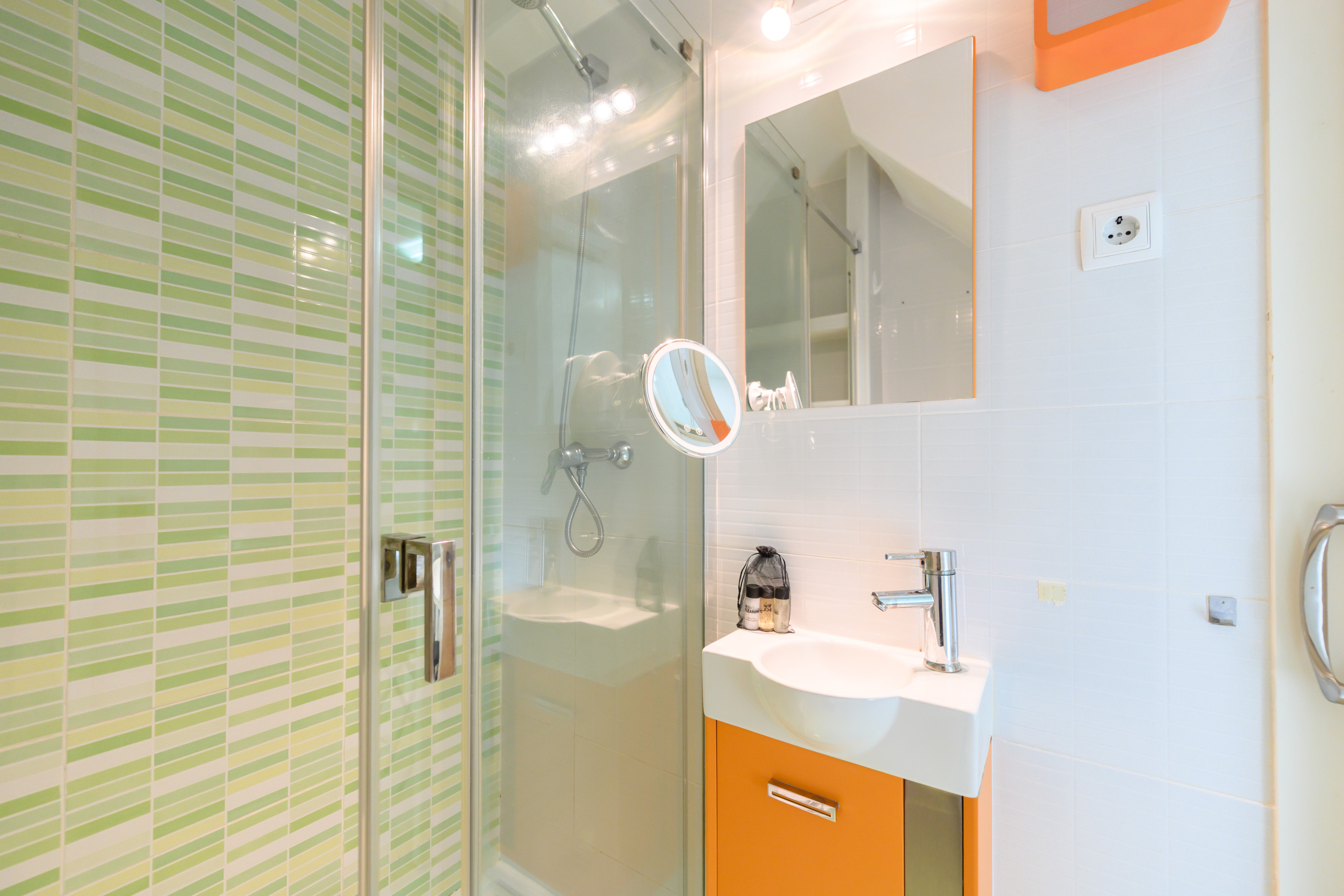 Los baños con ducha, dispone de mucho espacio, tiene secador de pelo y toalleros que funcionan con la calefacción.