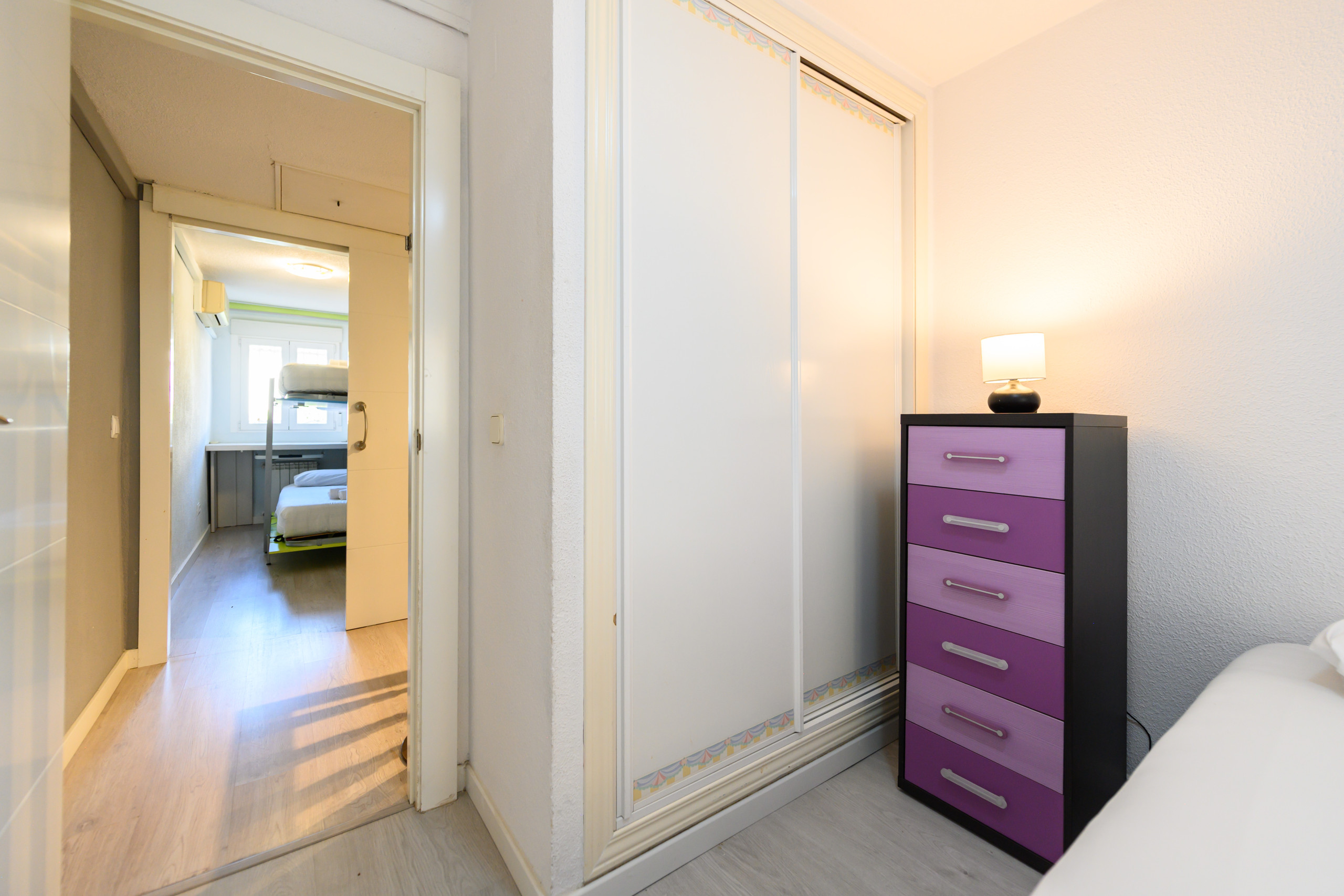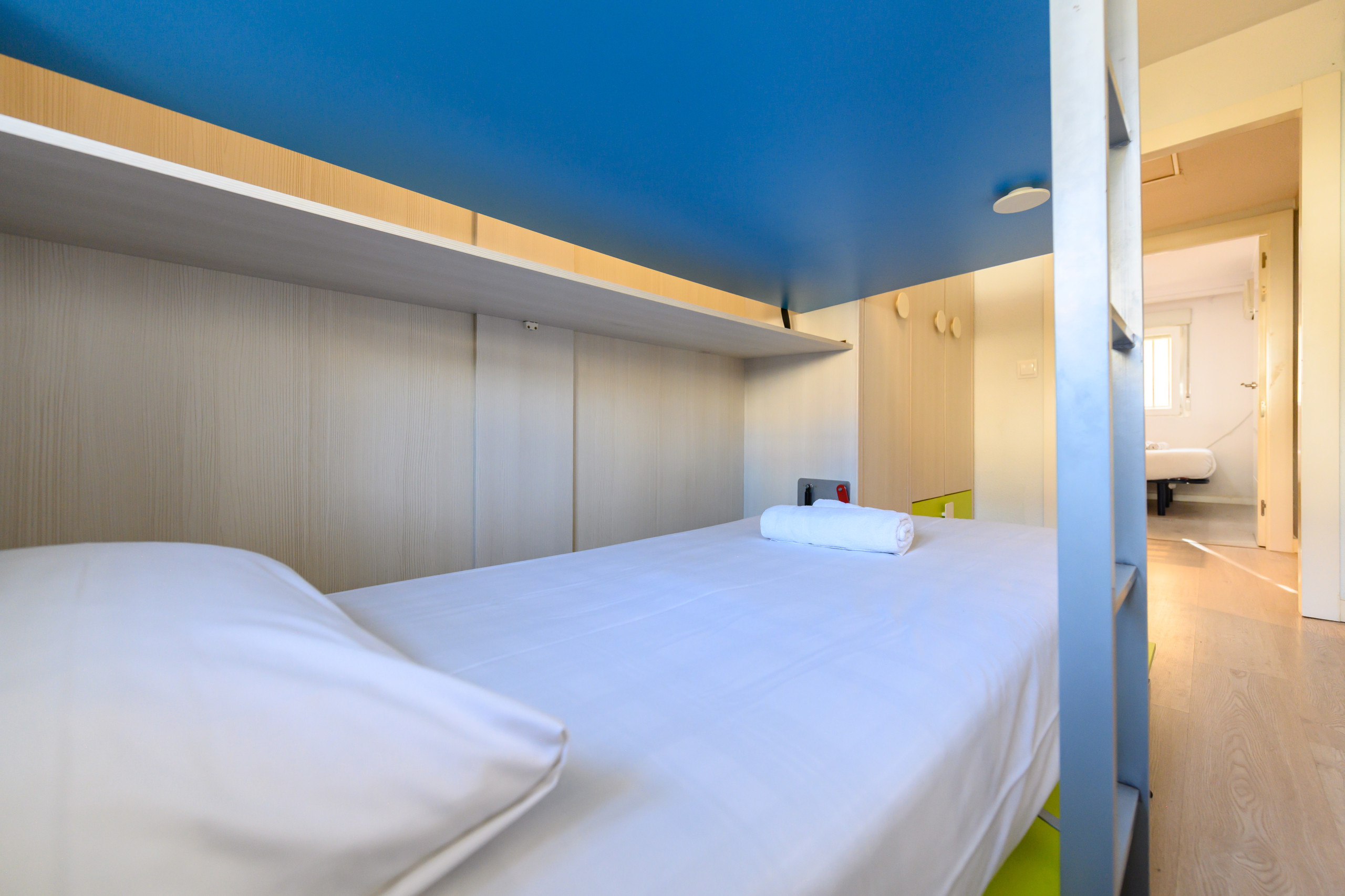 • Tres dormitorios (dos con cama de matrimonio, armarios empotrados, cómodas, mesitas de noche, ventana exterior, aire acondicionado y calefacción y el tercer dormitorio con litera de dos camas individuales, armario empotrado, aire acondicionado y calefacción).