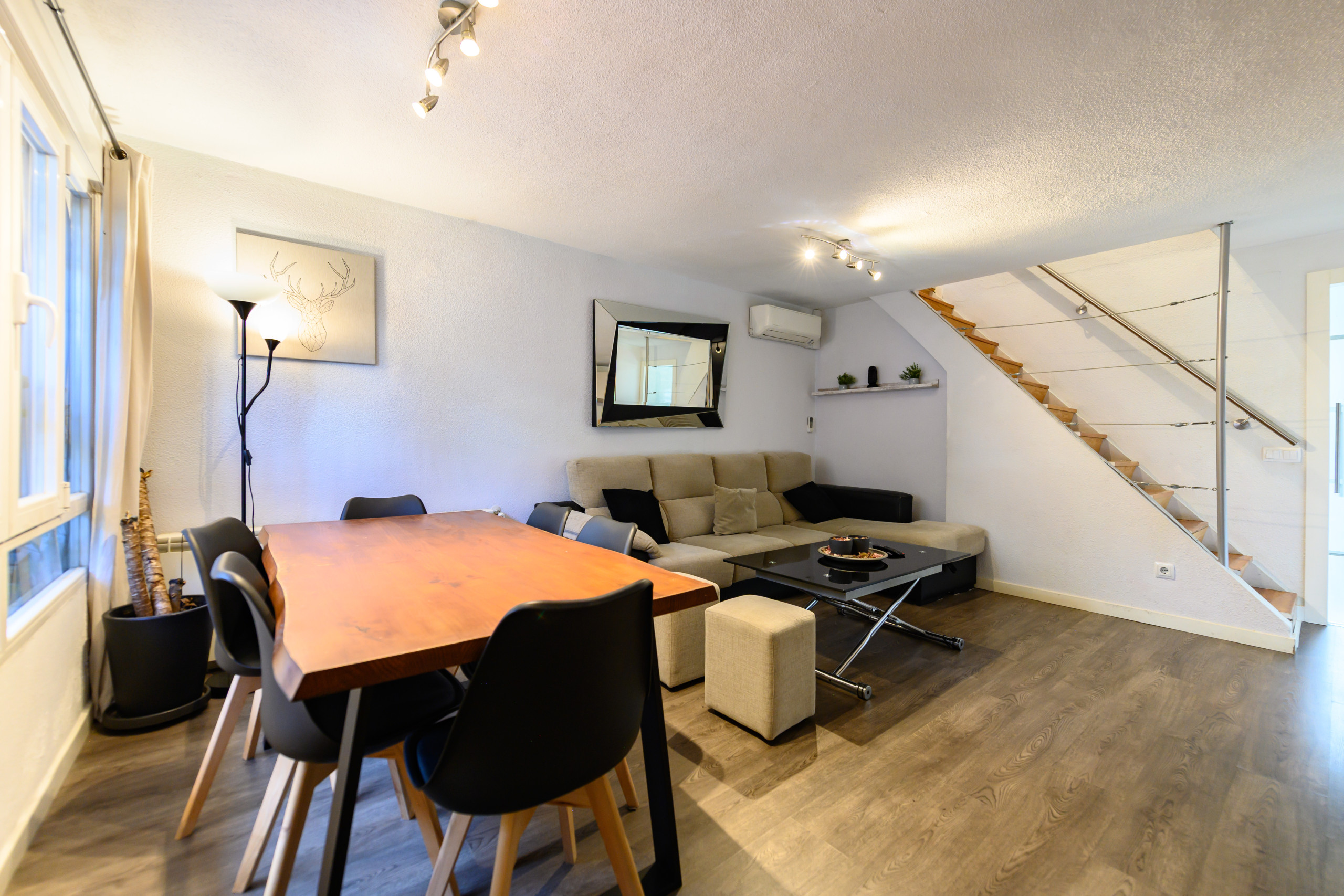Alquiler temporal. Amplio, moderno y luminoso chalet de dos plantas ubicado en la calle Sabadell, en el barrio de Fuencarral-El Pardo. La vivienda cuenta con tres dormitorios, dos baños y una amplia terraza. Se encuentra completamente amueblada y equipada, lista para entrar a vivir. Destaca por su excelente distribución, amplitud y privacidad, ideal para disfrutar de una estancia cómoda y tranquila.