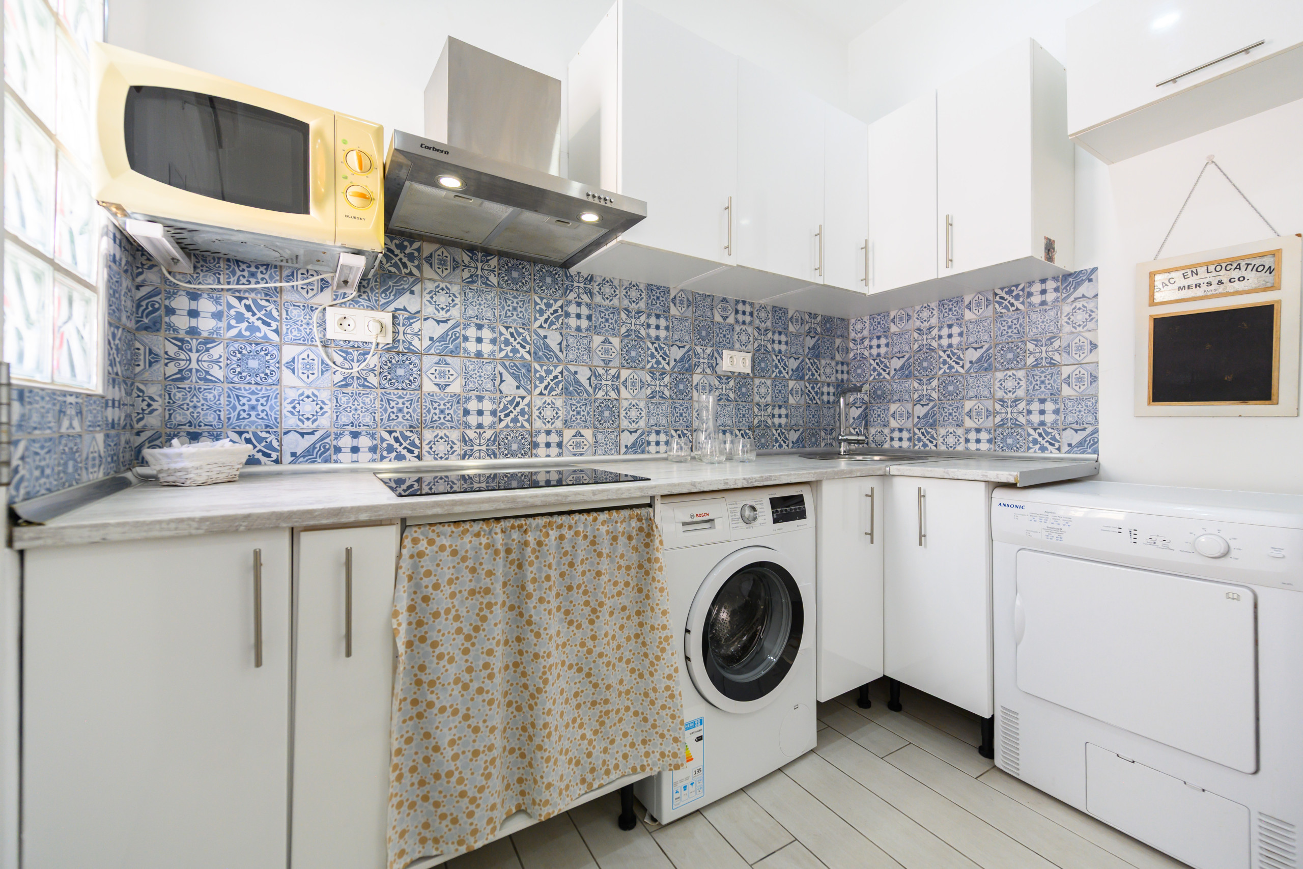 Cocina: La cocina, aunque pequeña, está totalmente equipada con todo lo necesario para cocinar tus platos favoritos. Cuenta con vitrocerámica, nevera, microondas.