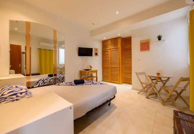 El estudio cuenta con una cama doble y un armario empotrado que proporciona un amplio espacio de almacenamiento. Está equipado con aire acondicionado, lo que garantiza una temperatura agradable durante todo el año.