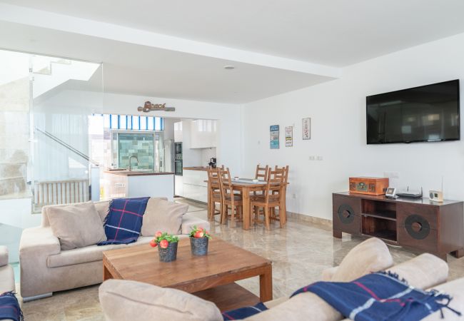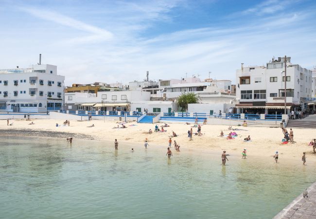 Espaciosa Villa en Corralejo. Cerca del CC. Campanario y a poco metros de la playa y con todos los servicios cercas. Hay suficiente espacio para aparcar varios coches en frente. La Villa cuenta con dos dormitorios grandes, dos baños, uno de ellos con una bañera grande y un aseo. Tiene todos los enseres necesarios para una estancia cómoda y comfortable. Par ir a la playa y a los sitios de moda no hace falta coche.