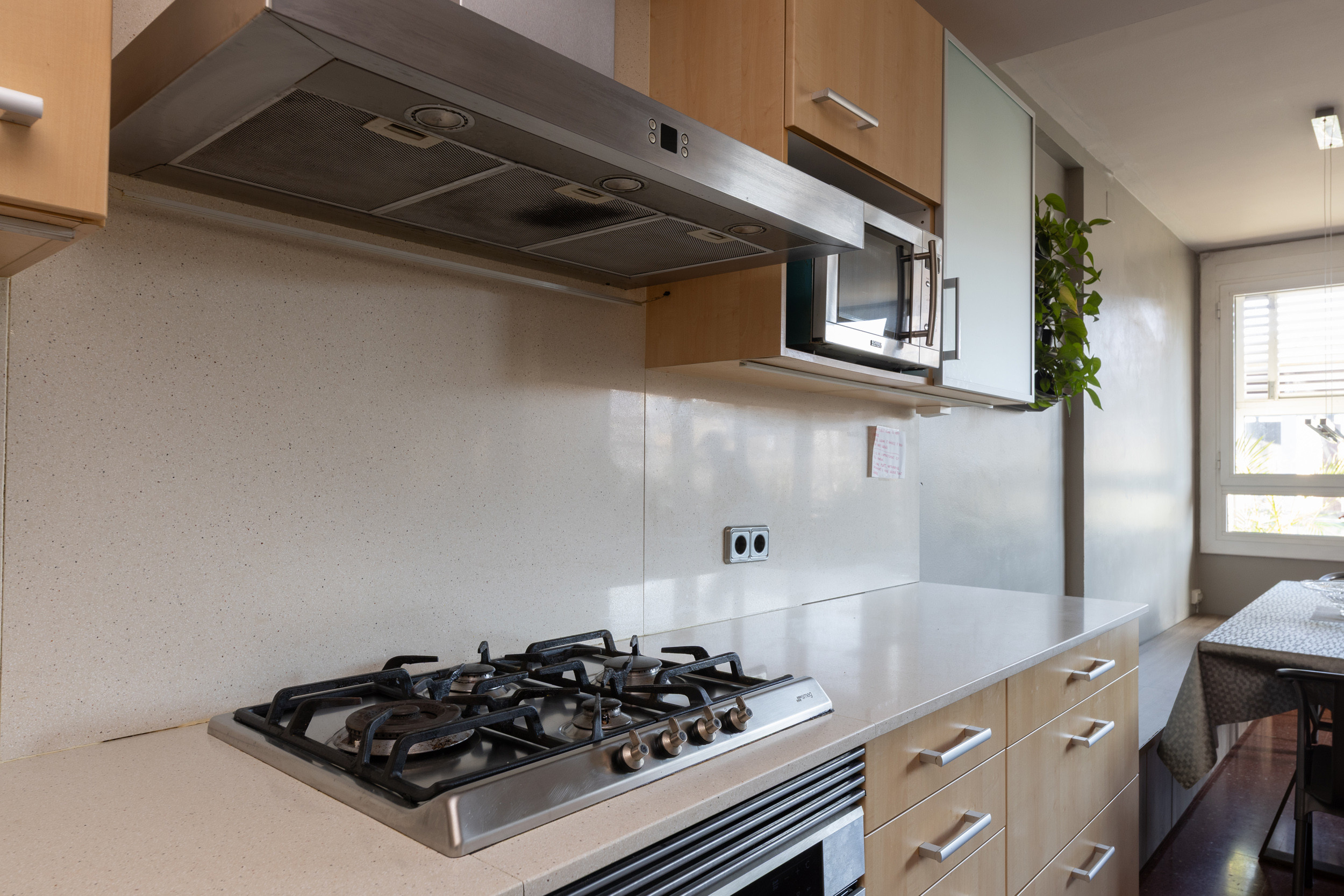 Quiet and safe area, with all the necessary services for an optimal stay in Barcelona. The apartment is located at the intersection of the Sants, Eixample and Les Corts neighbourhoods and has the best of each area. Public transport is easily accessible, and there are plenty of shops and restaurants within a short distance.