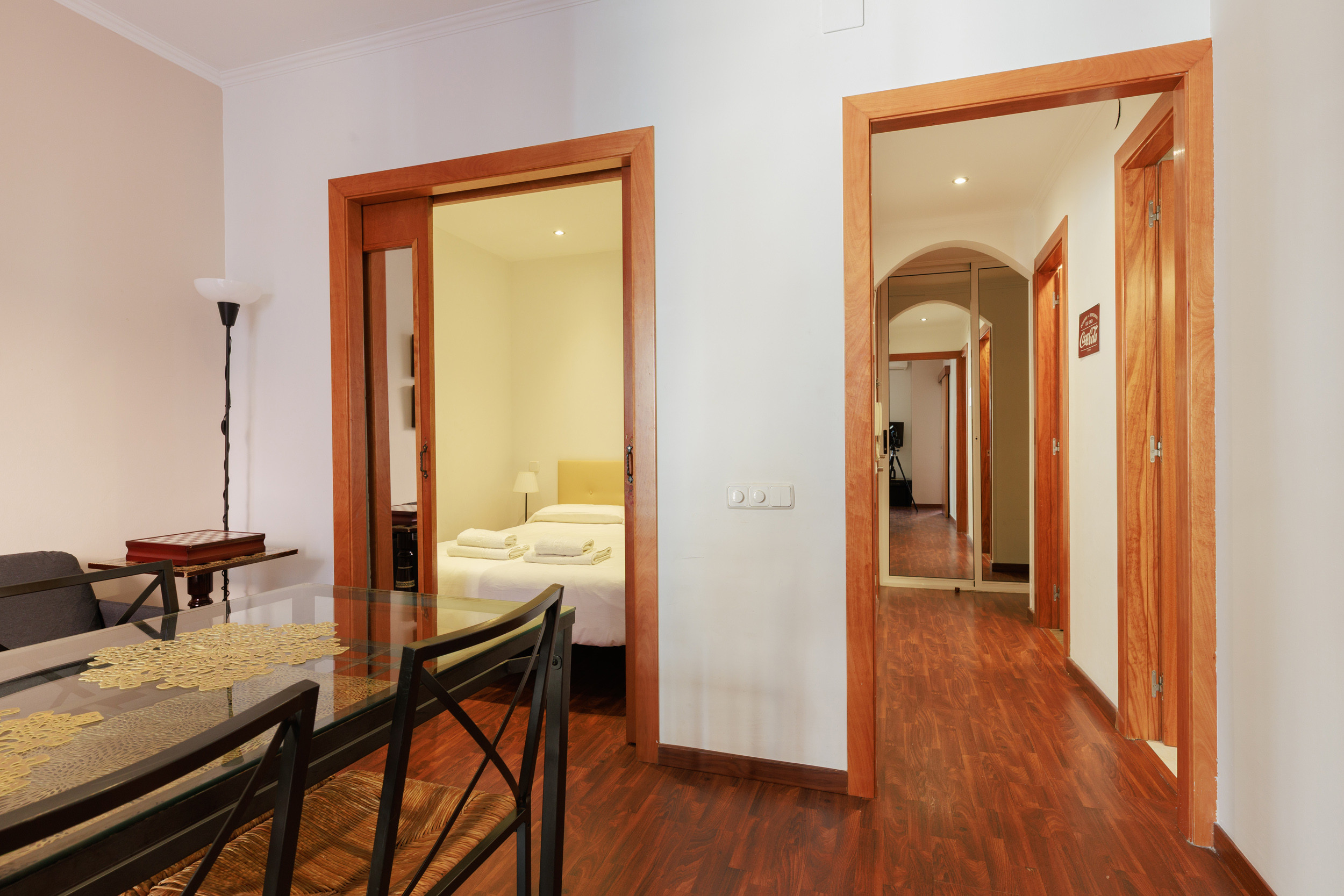 The apartment is located in the centre of Barcelona, in the heart of the Eixample. It is a very safe, quiet area, but at the same time active and full of restaurants and points of interest. This neighbourhood is the most cosmopolitan in Barcelona, where Barcelona families mix with the young and international atmosphere. Next to the accommodation, there is everything you need to have a comfortable and attractive stay: supermarkets, bakery, restaurants, tapas bars, parking.