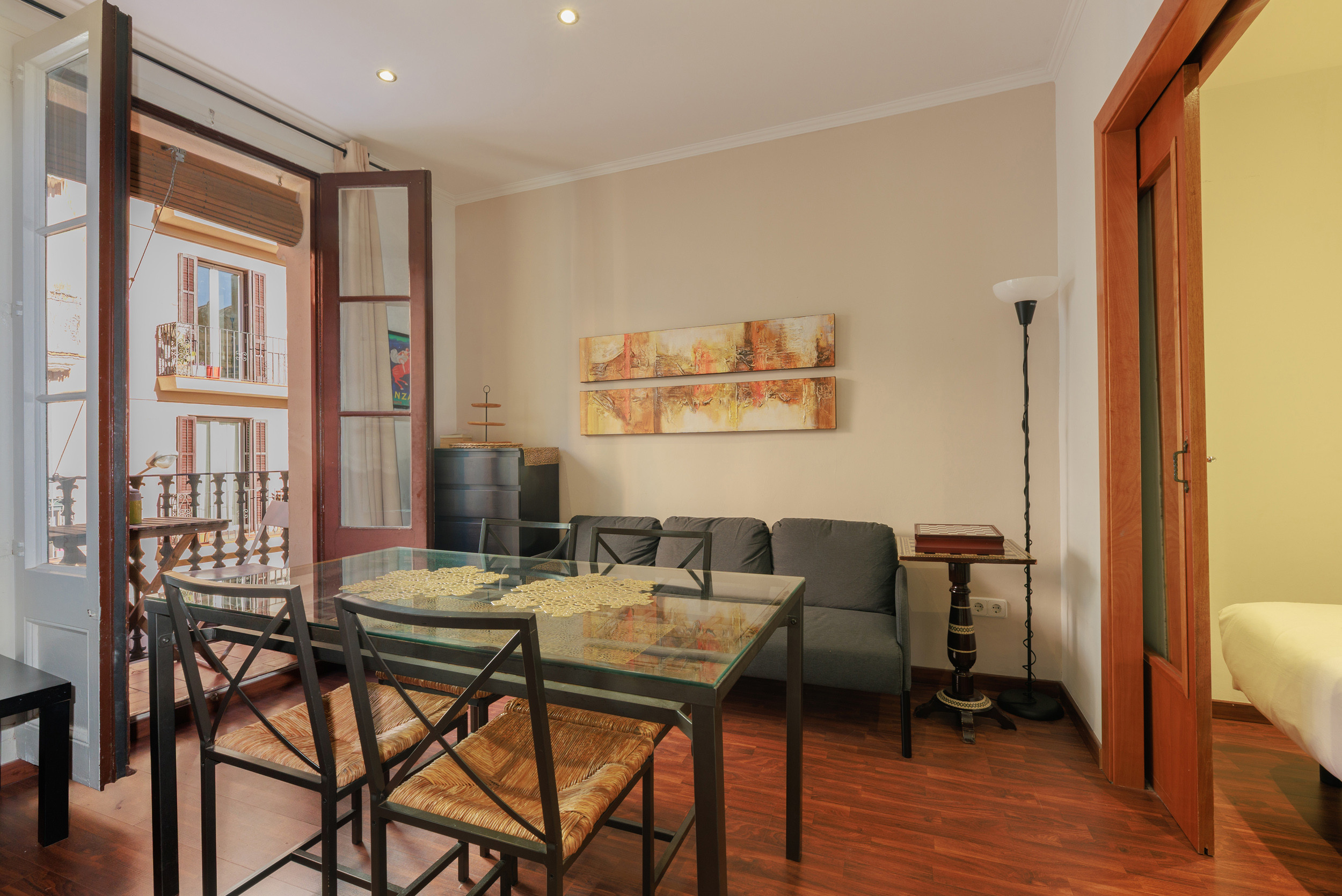 The apartment has a balcony with views of Barcelona and is completely renovated and decorated with style, original details from the initial construction of the late 19th century have been maintained. It is ideal for couples, families, and business trips. For greater convenience and security, the access system to the apartment is through a code.