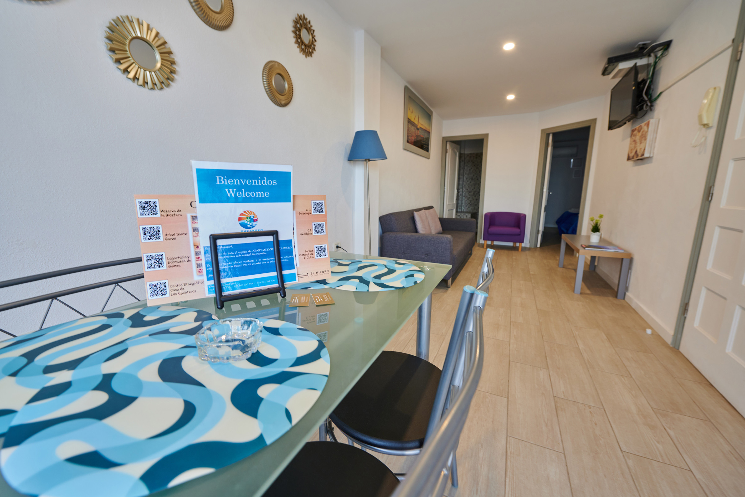 La Restinga beach apartment 2 offers guests all kinds of comforts, equipment, and a privileged location, on the seafront in La Restinga beach. The accommodation is made up of a terrace with fantastic views of the sea, a sports pier and the beach, a fully equipped kitchen, a double sofa bed, a bedroom with two single beds and a modern bathroom with a shower. Among the elements are air conditioning, washing machine, ceramic hob, microwave, kitchen utensils in general, flat-screen TV with international channels, Wi-Fi internet throughout the accommodation, table, and iron, hairdryer, etc ... The apartment is on the first floor. La Restinga is a small town of very calm fishing origin with a great tradition. It has all the services for the enjoyment of a pleasant stay. Restaurants, cafes, supermarkets, pharmacy, a fishermen's guild where you can buy fresh fish every day, etc ... The location facing the sea, the equipment, the beach 10 meters from the entrance to the apartment, the gastronomy, the services, the tranquility, the spring climate throughout the year, and the friendliness of its people make this destination very attractive where you will undoubtedly enjoy a wonderful stay. Welcome to La Restinga !!!