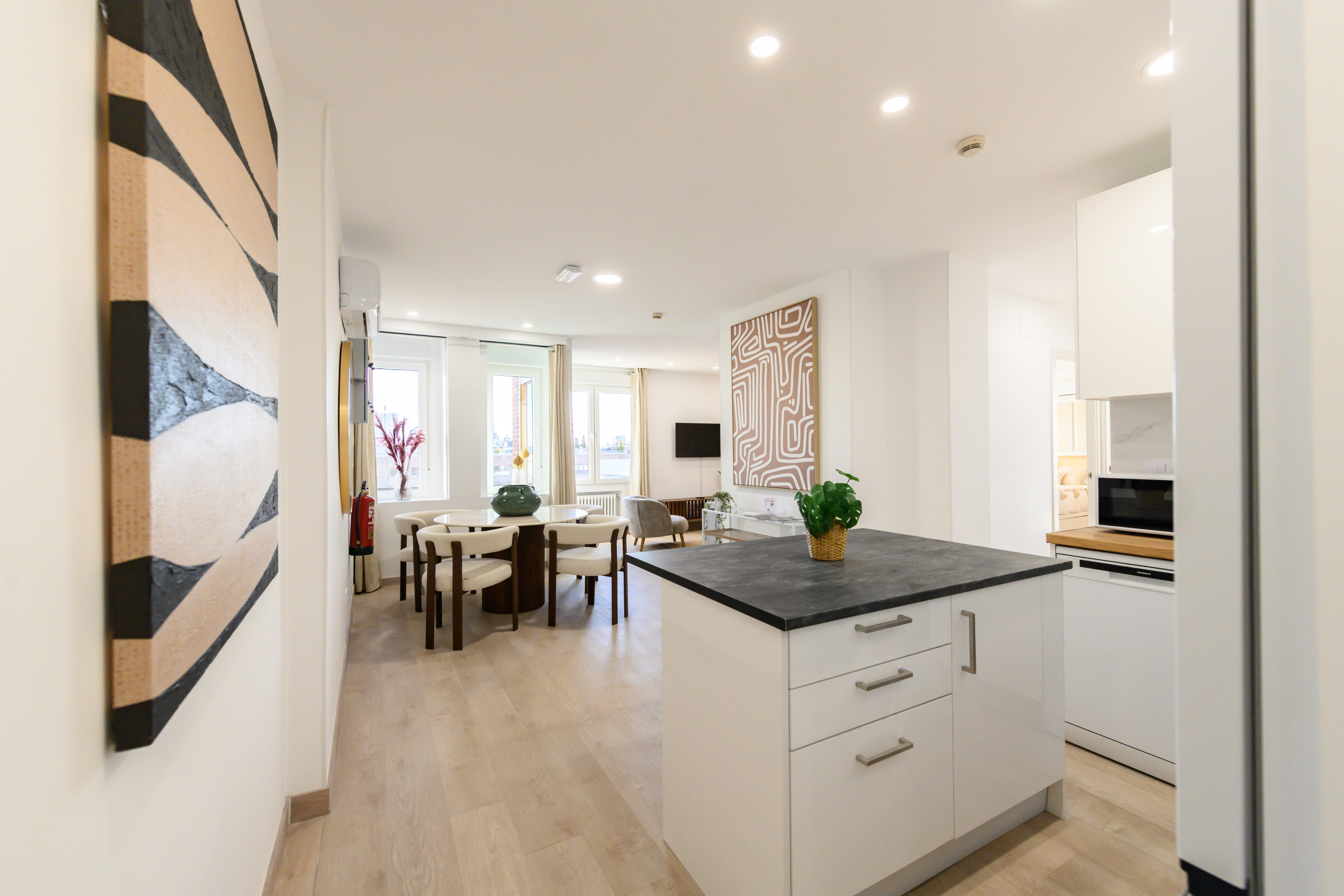 In short: A spectacular and modern apartment, fully furnished and equipped, very bright, with two bedrooms and a private terrace offering beautiful city views. A perfect option for those seeking a luxurious, comfortable, quiet, and well-connected stay in Madrid.