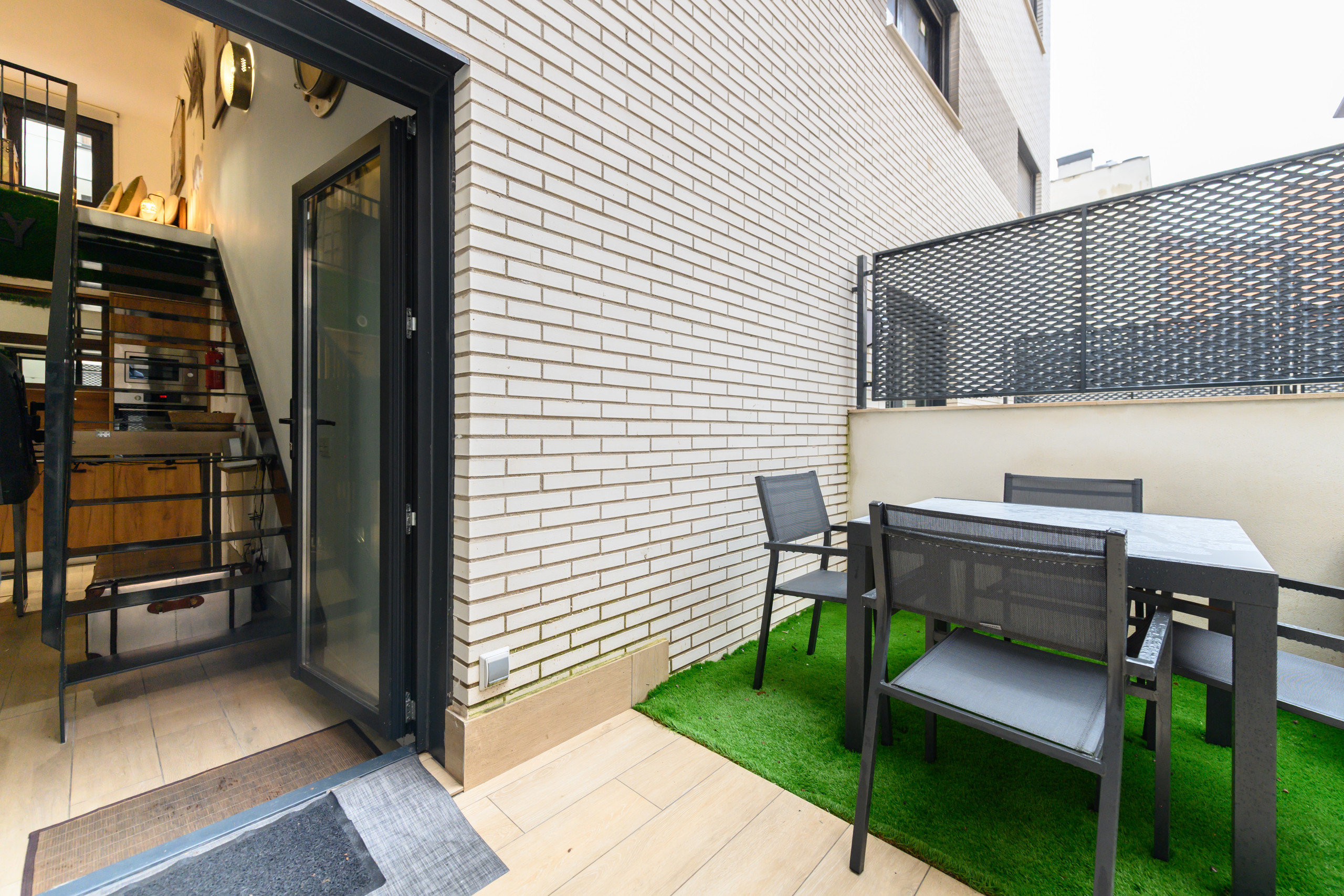 Temporary rental. Spacious and modern loft with a private terrace, very bright, exterior apartment with large windows that allow abundant natural light throughout the day. Ideal for stays for work, studies, or to enjoy Madrid with family or friends. Located in a quiet residential area, in a modern building with an elevator and good transport links.