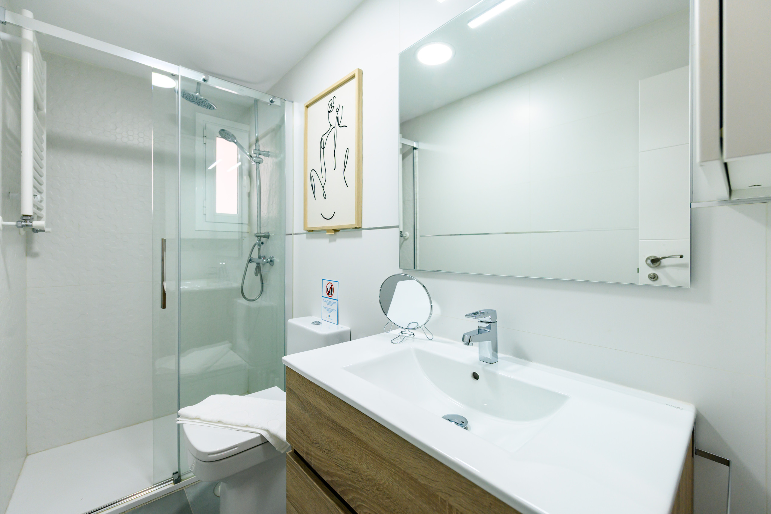 The apartment has kitchen in the living room, two bathrooms with shower, living room and two spacious bedrooms. It is newly renovated and furnished with a modern and minimalist style. The appliances are the latest generation and are perfectly integrated into the design. The rooms are light and airy, with double windows. Beds are 150cm, Queen Size