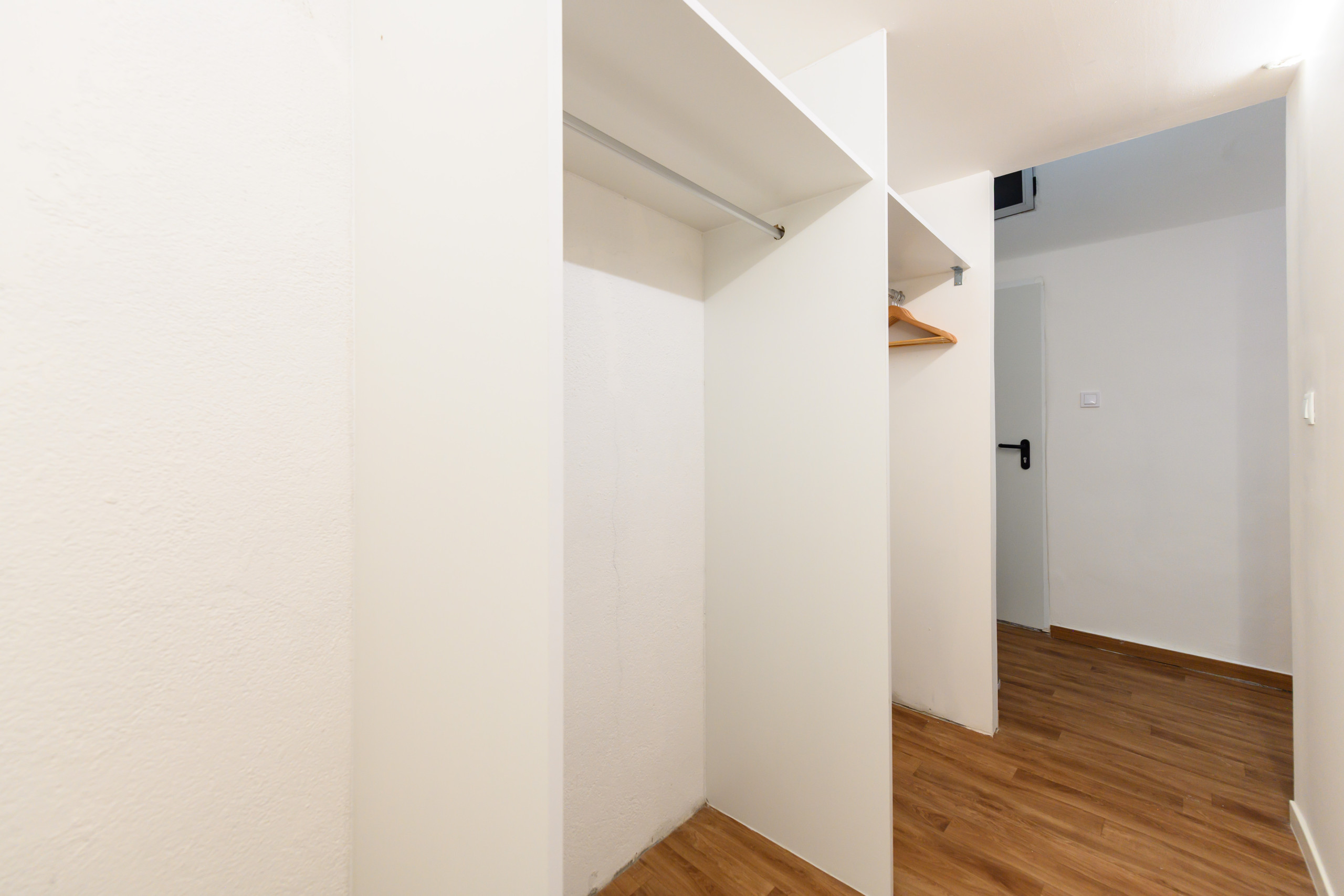 The apartment has a master bedroom with double bed, bathroom, wardrobe, wooden floors, a cozy space.