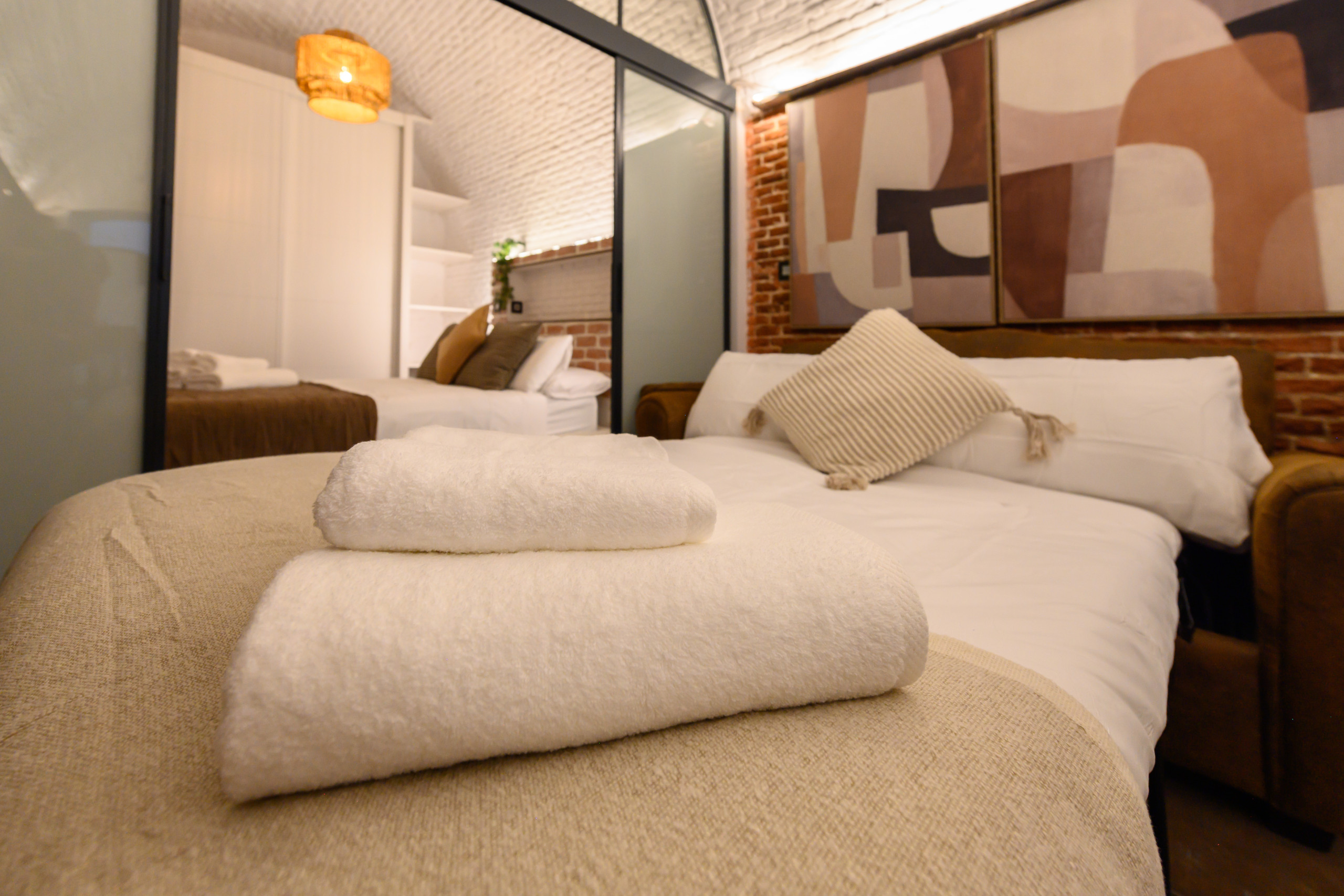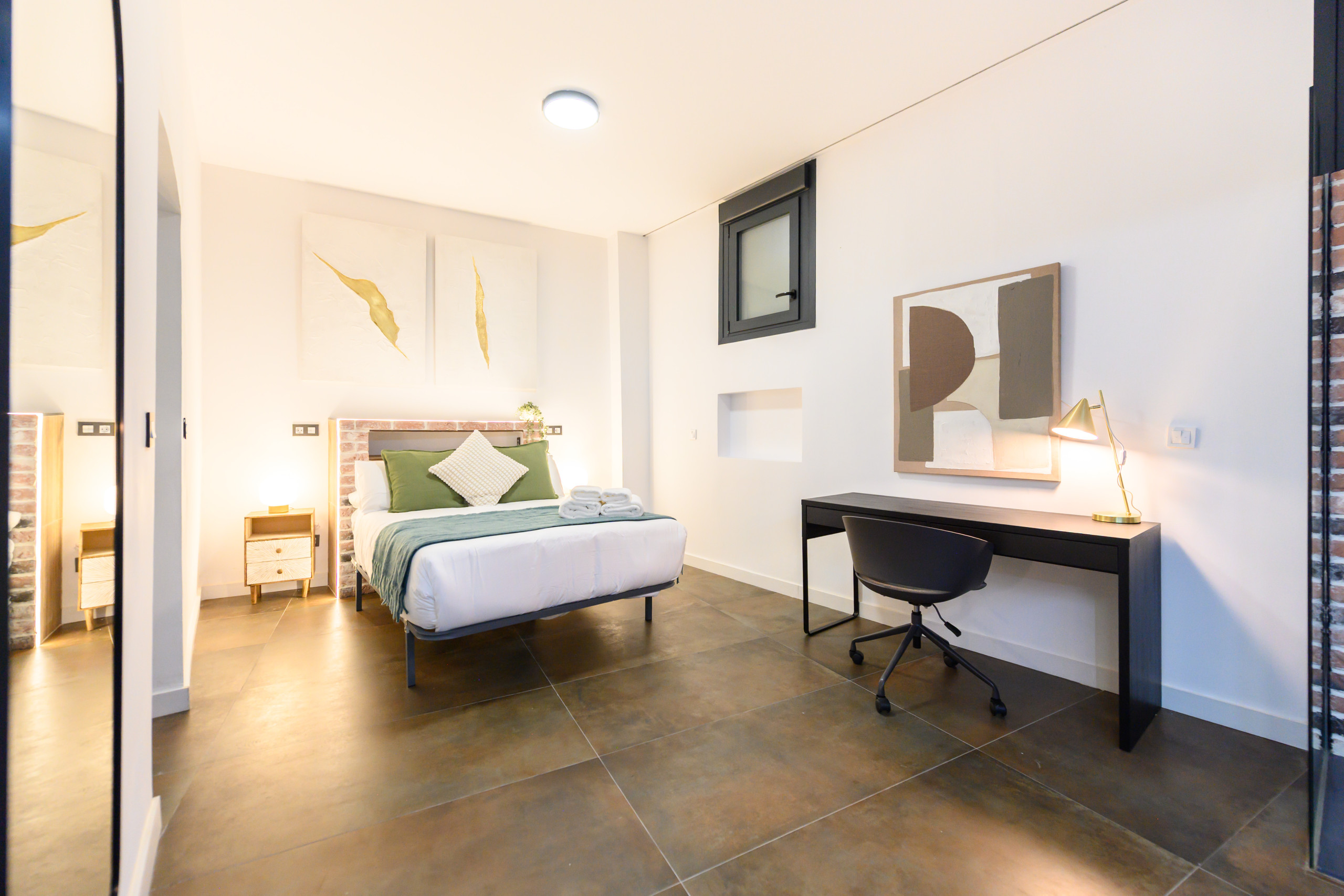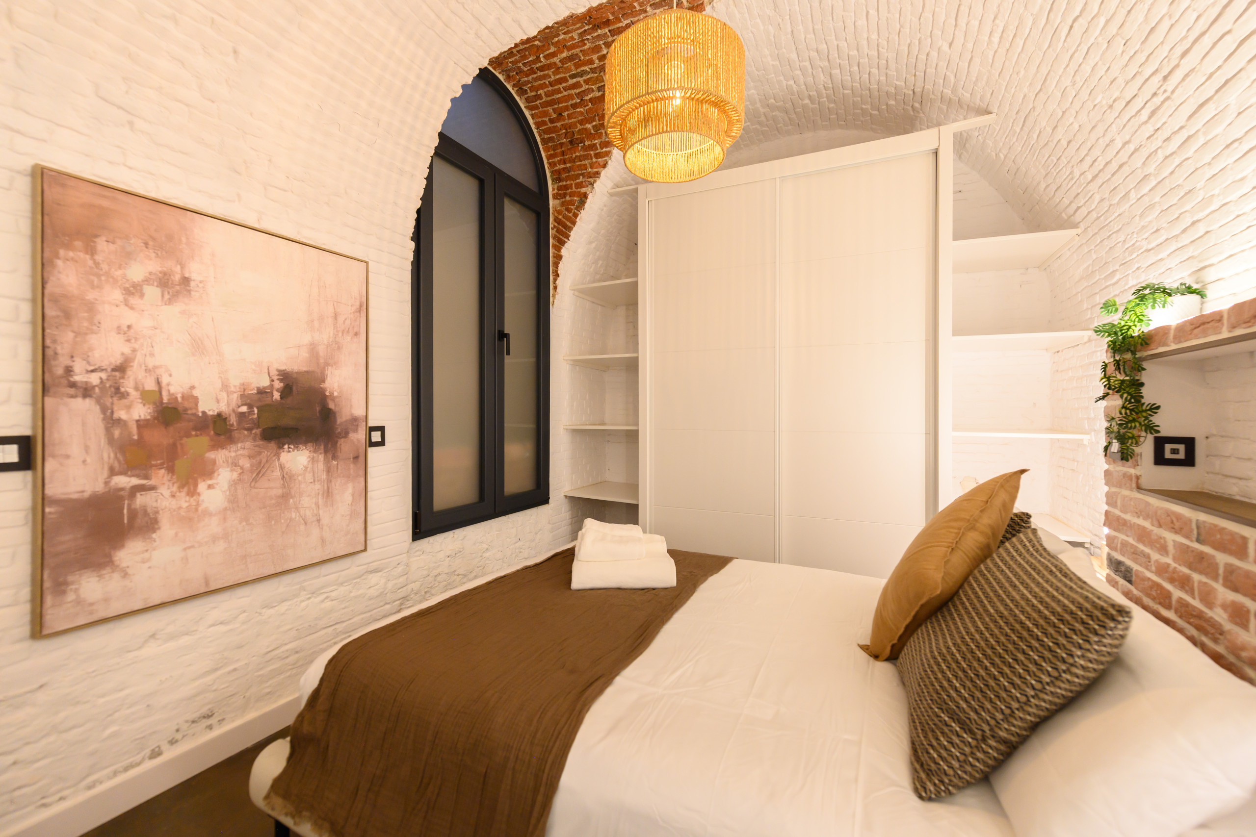 Temporary Rental Flat. This cosy 2-bedroom flat is located in the heart of Embajadores, one of Madrid's most vibrant and popular neighbourhoods. Situated on the fifth floor interior of a building with a lift, it offers a perfect location to enjoy everything the city has to offer. Just a few steps away, you'll find a wide variety of restaurants, bars, shops, supermarkets, theatres, parks and much more. Additionally, the area is excellently connected by public transport, with several metro and bus lines that will allow you to move around the city with ease.