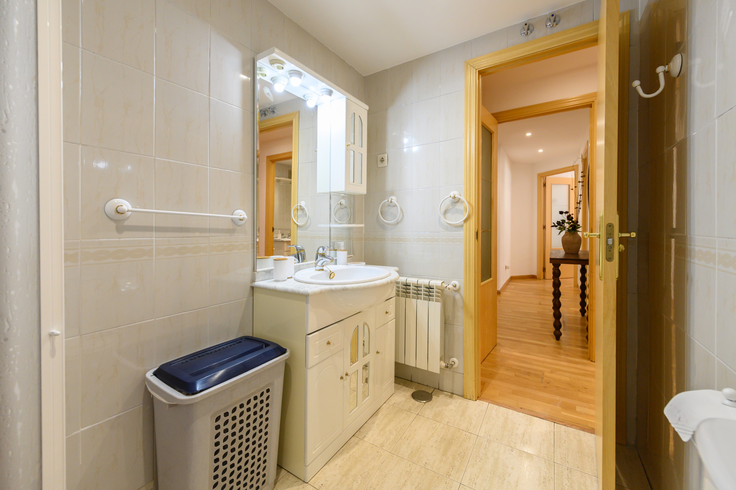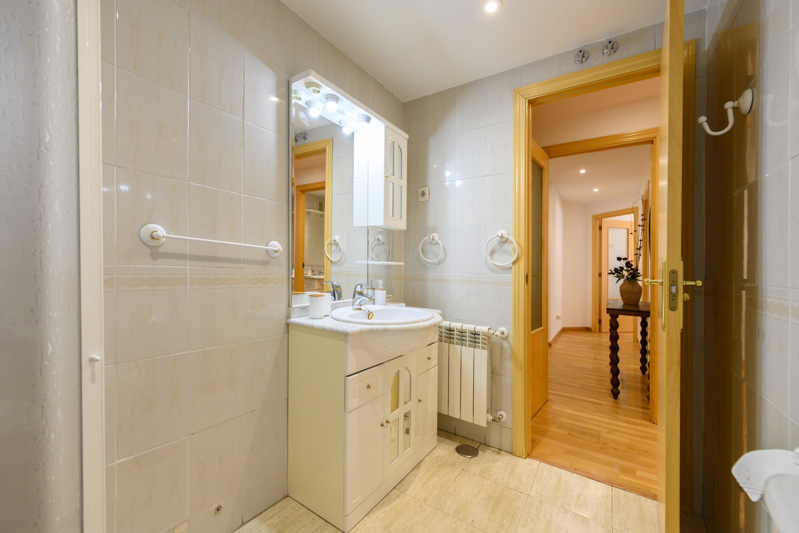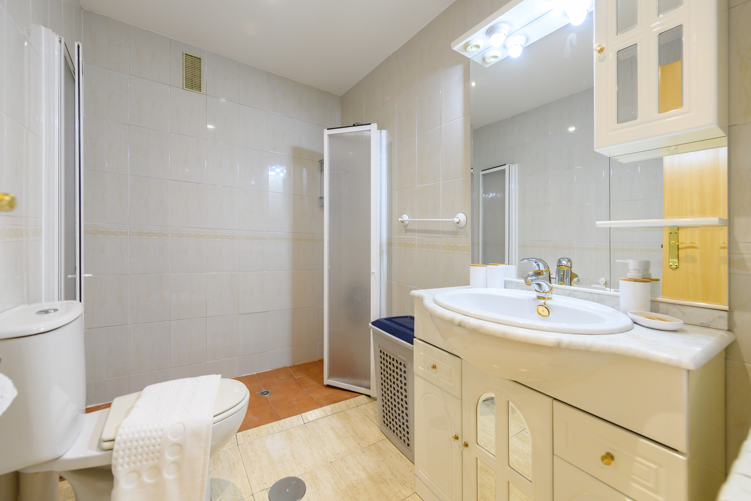 The flat has a full bathroom, equipped with a modern shower tray and a current design washbasin unit. Additionally, it has an extra toilet, very practical for day-to-day use.
