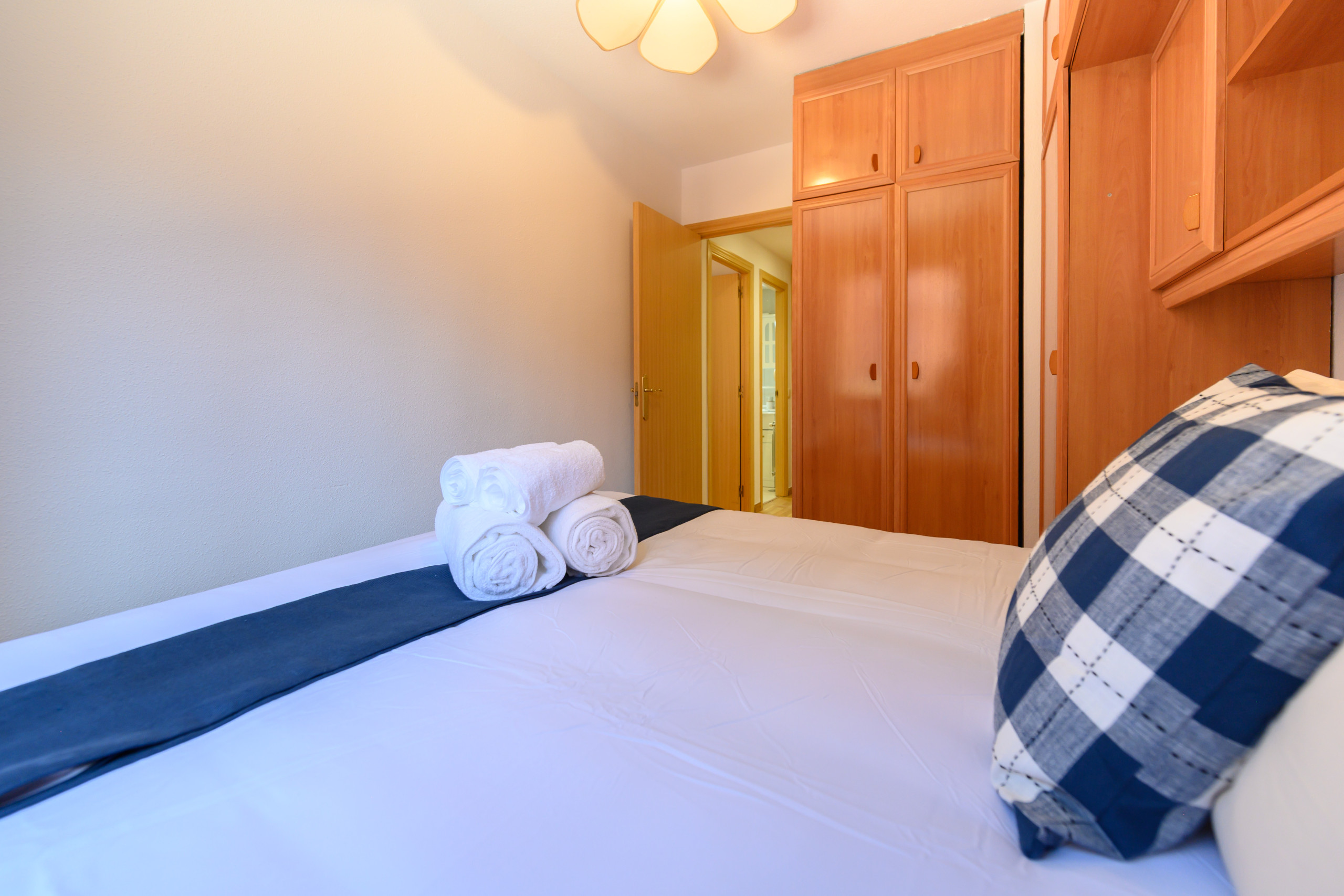 It has two bedrooms, both with built-in wardrobes offering great storage capacity. One of them also has air conditioning, providing comfort during the warmest months.