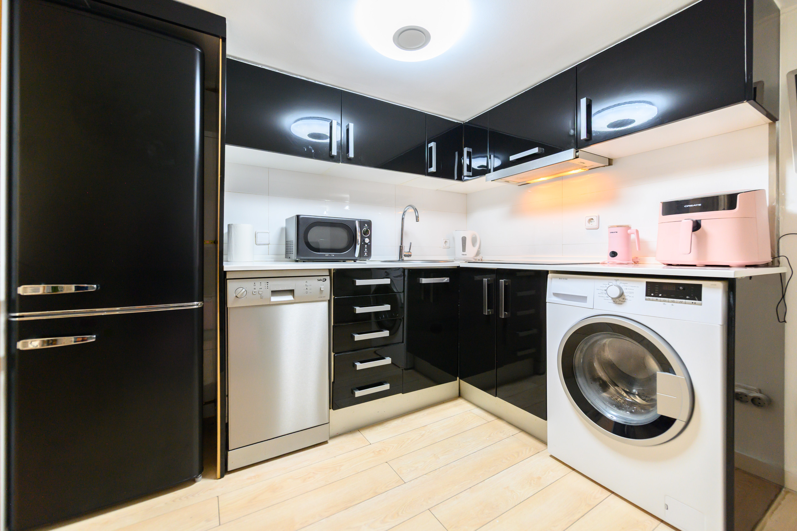 The apartment has air conditioning and high-speed Wi-Fi, so you will always be connected and comfortable during your stay. The American-style kitchen is fully equipped with all the necessary appliances, such as an oven, microwave, dishwasher and washing machine.