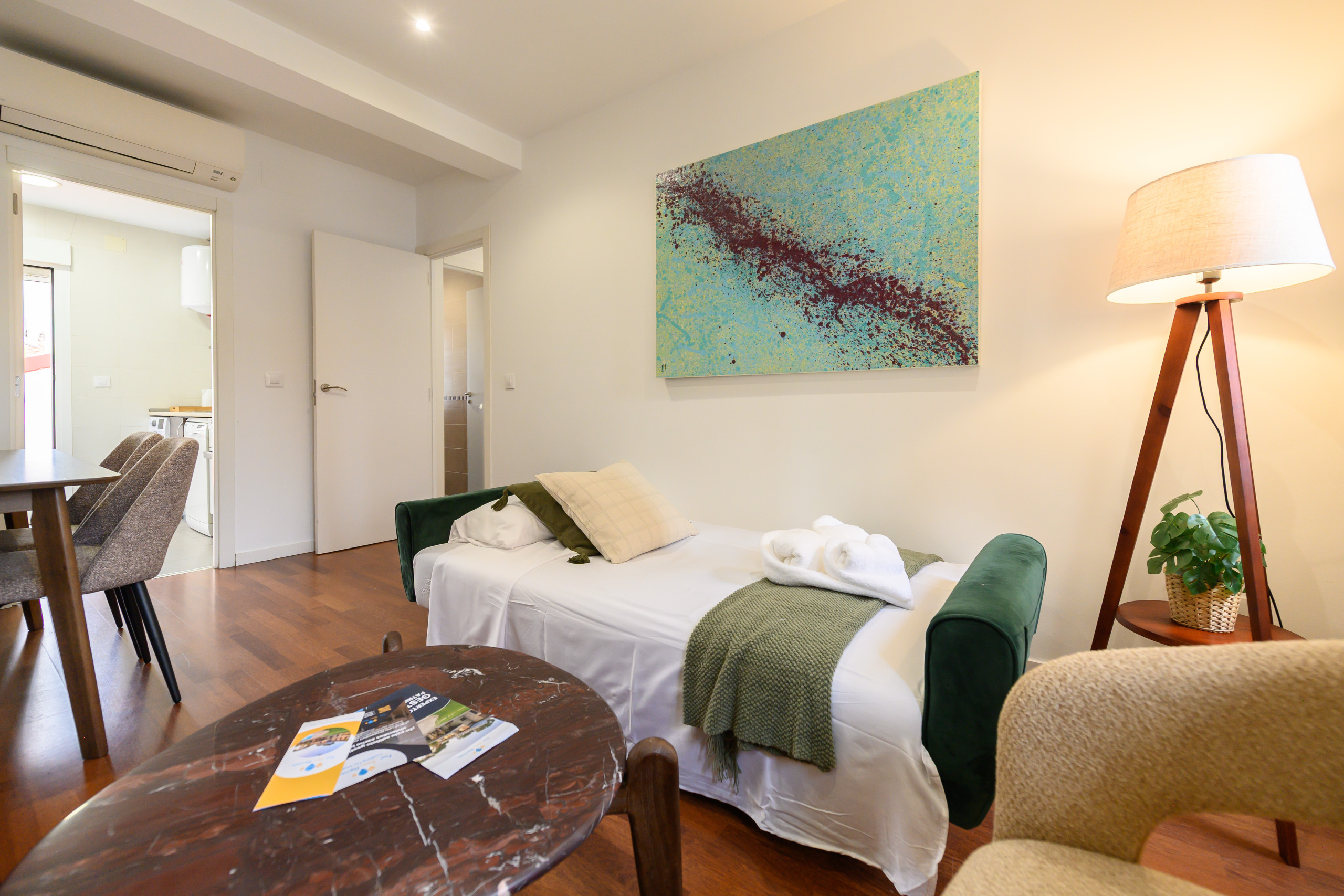 The flat is equipped with everything necessary to make your stay as pleasant as possible. You'll enjoy high-speed internet, perfect for working, studying or watching your favourite series. Additionally, the property has heating for the coldest months and air conditioning for the summer.